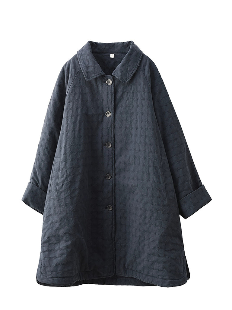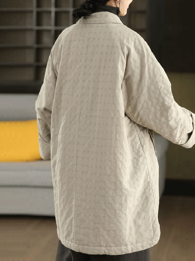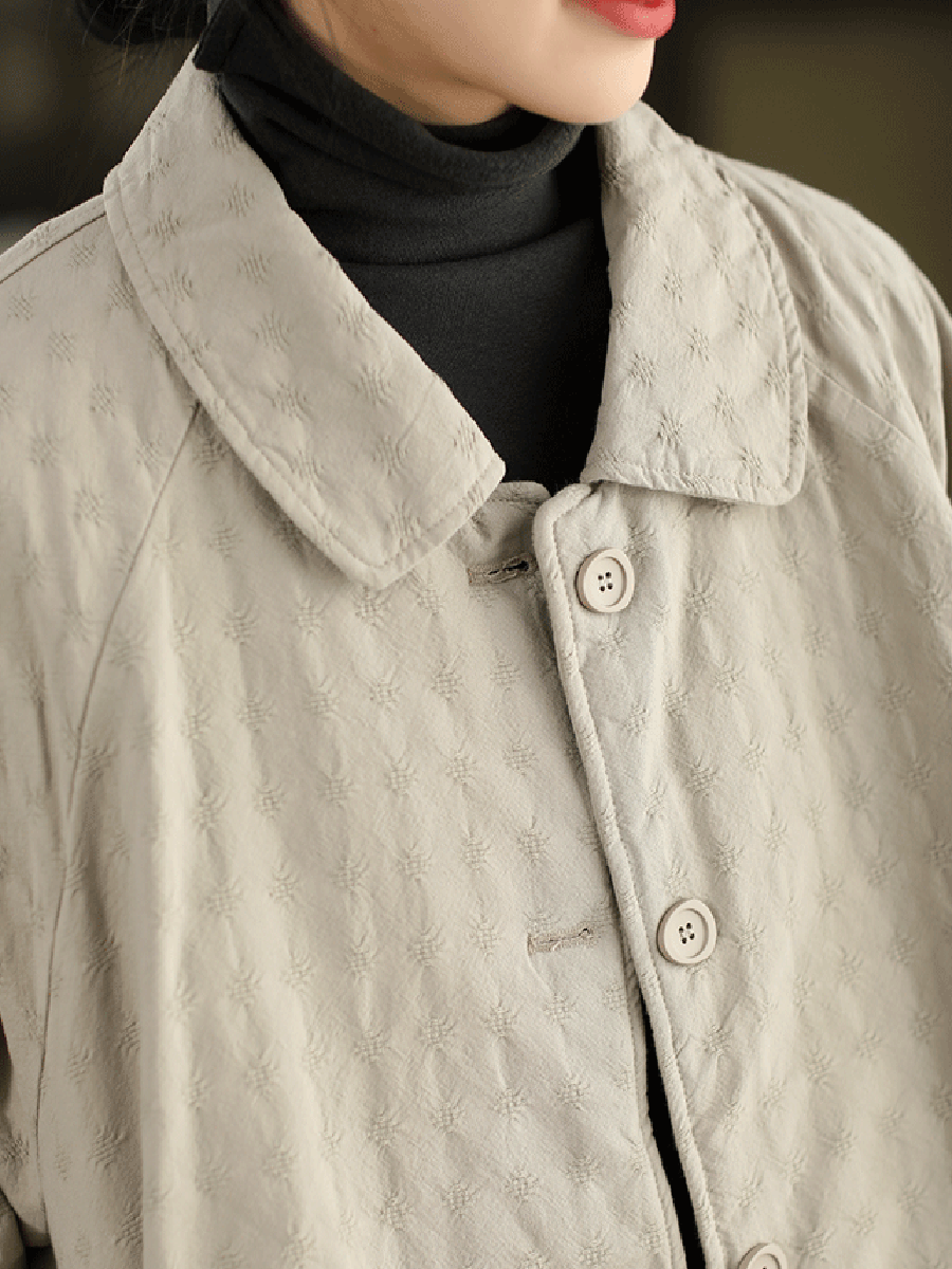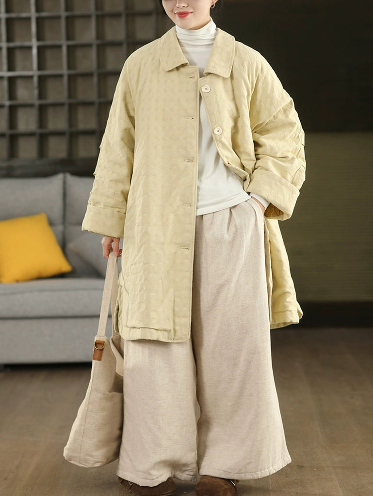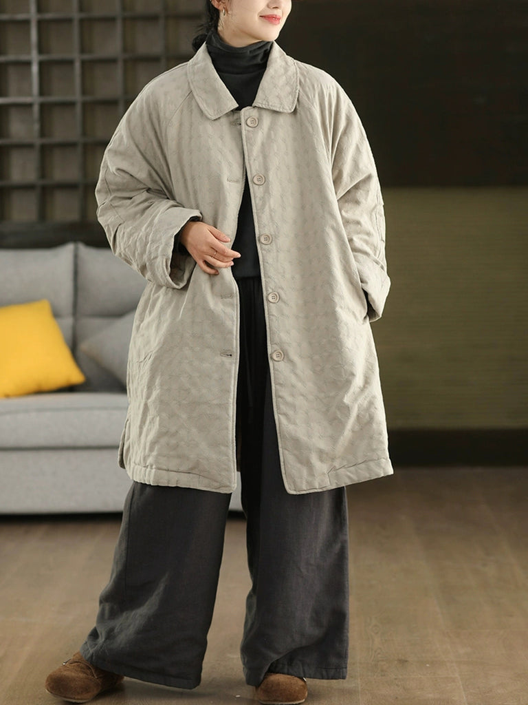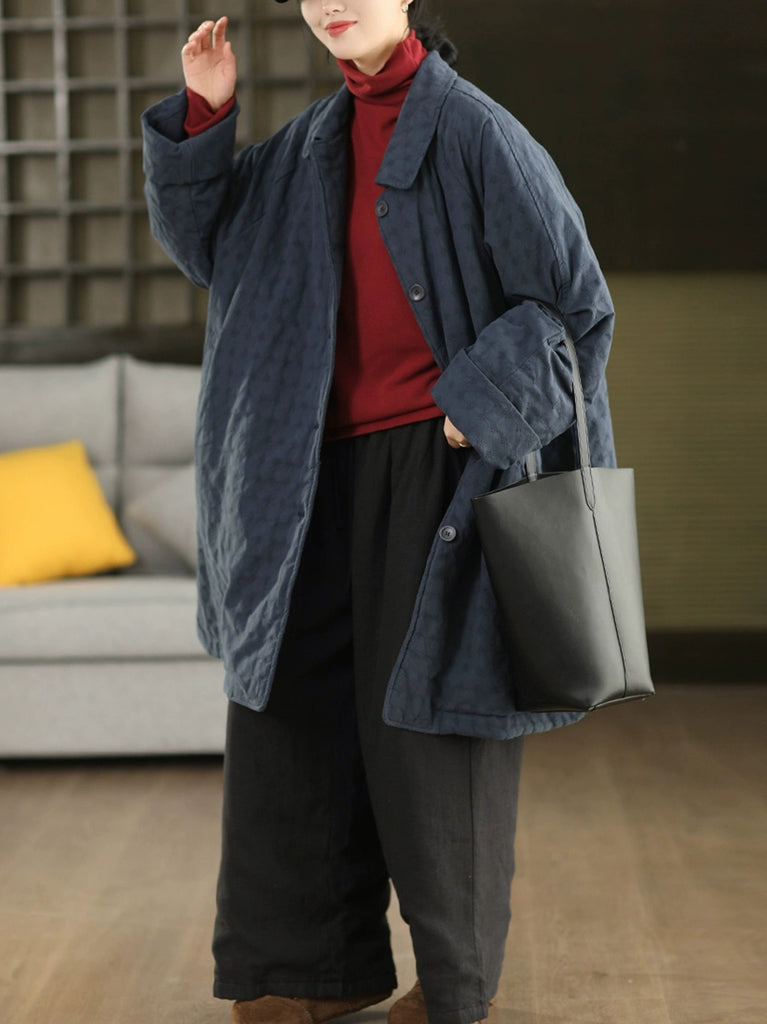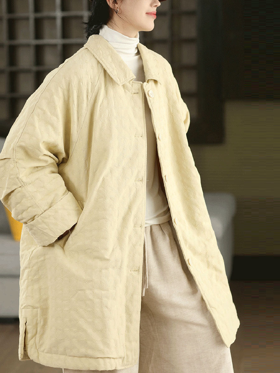 Women Winter Retro Jacquard Turn-down Collar Coat