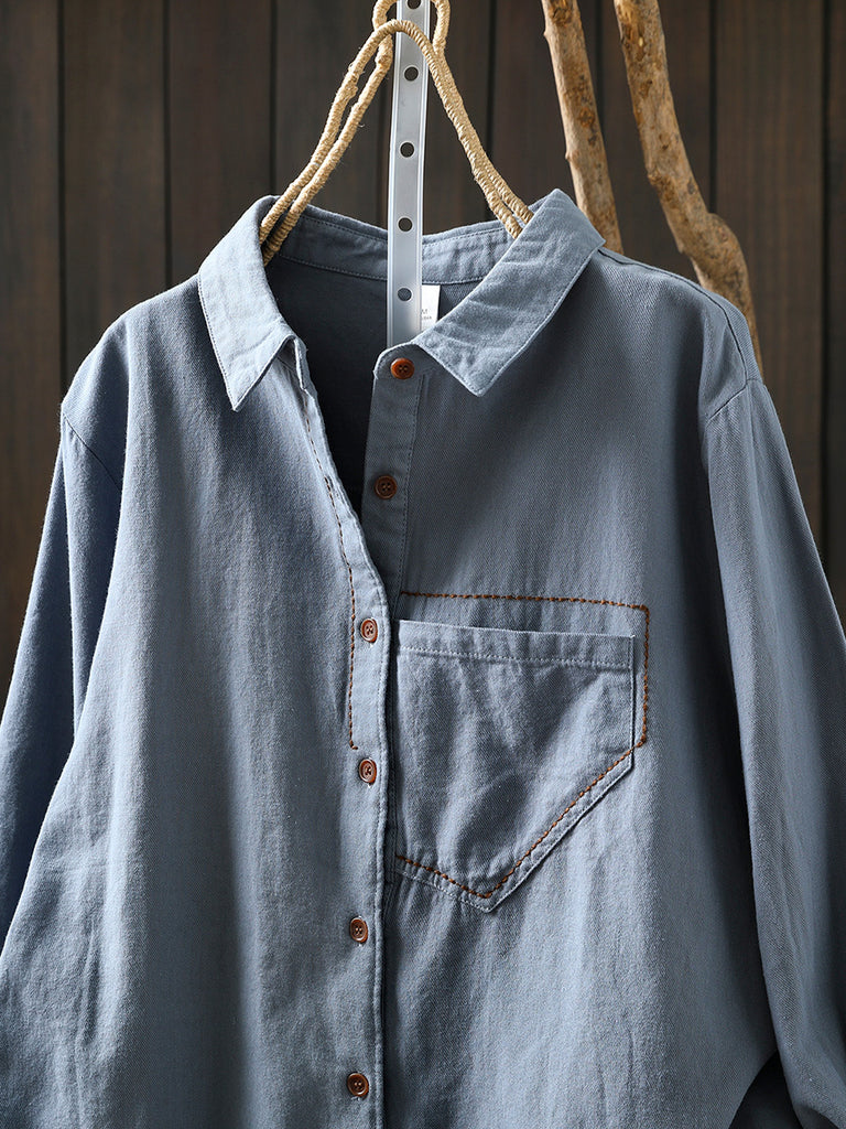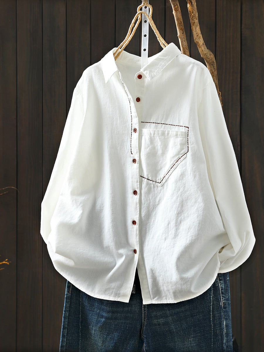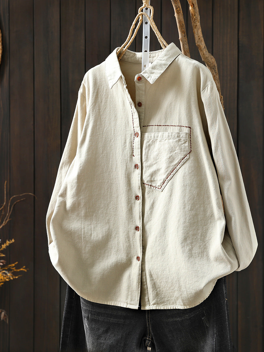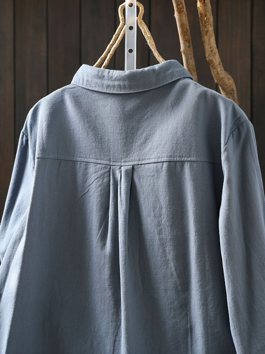 Crafted from premium 100% cotton, this winter blouse delivers both comfort and sophistication. The classic turn-down collar and full-length regular sleeves provide timeless elegance, while the artsy design adds contemporary flair. Ideal for autumn and winter seasons, the pure color palette ensures versatile styling options for any wardrobe. A refined essential that transitions seamlessly from casual to professional settings.