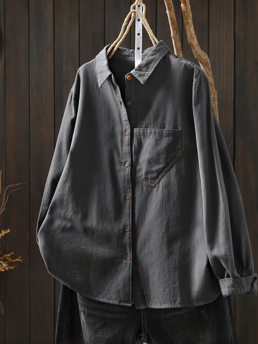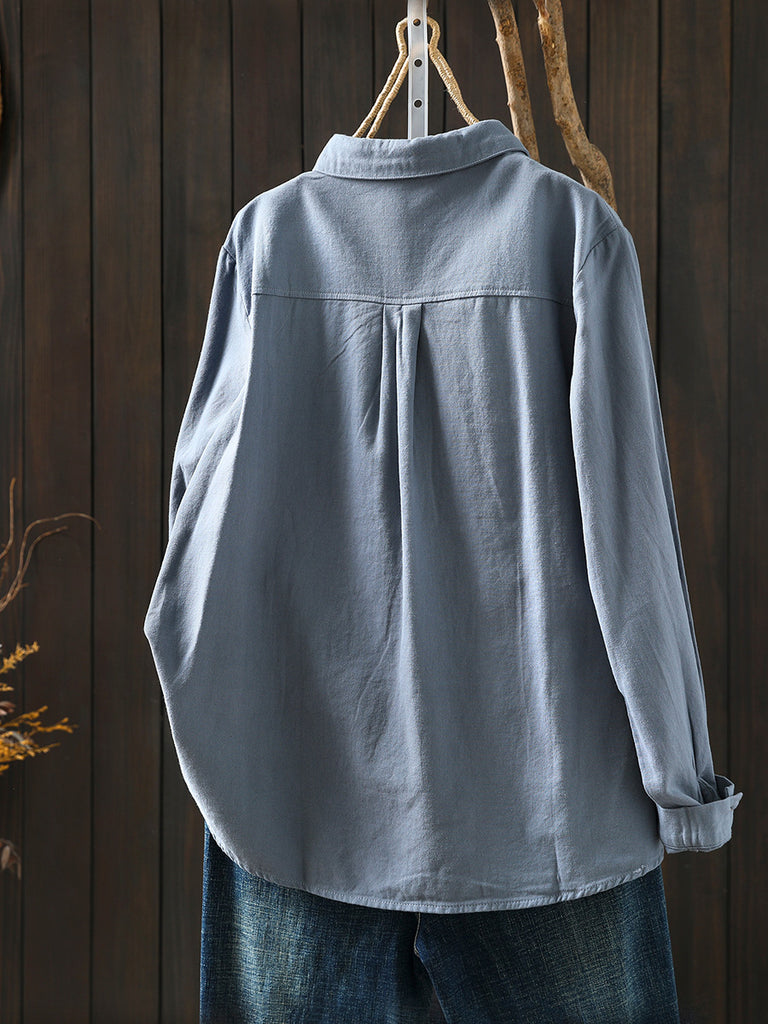 Women Winter Artsy Pure Color Turn-down Collar Blouse
