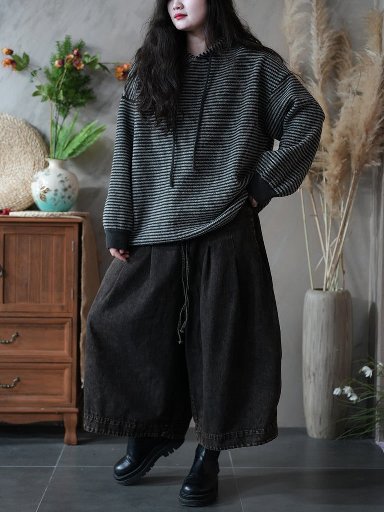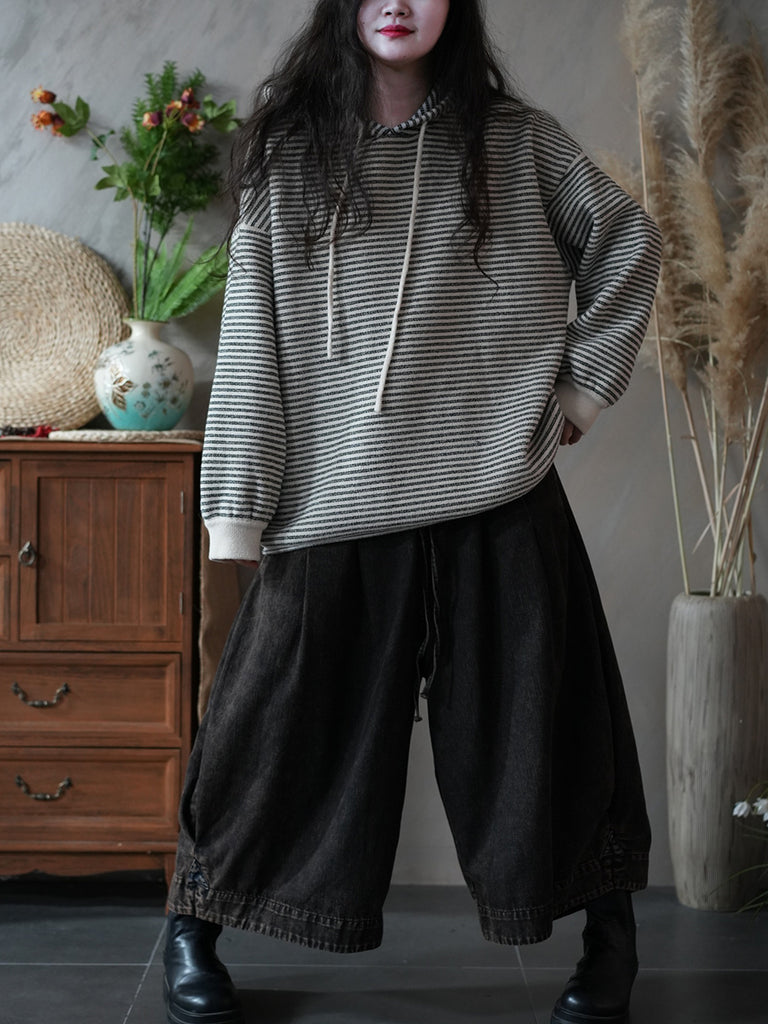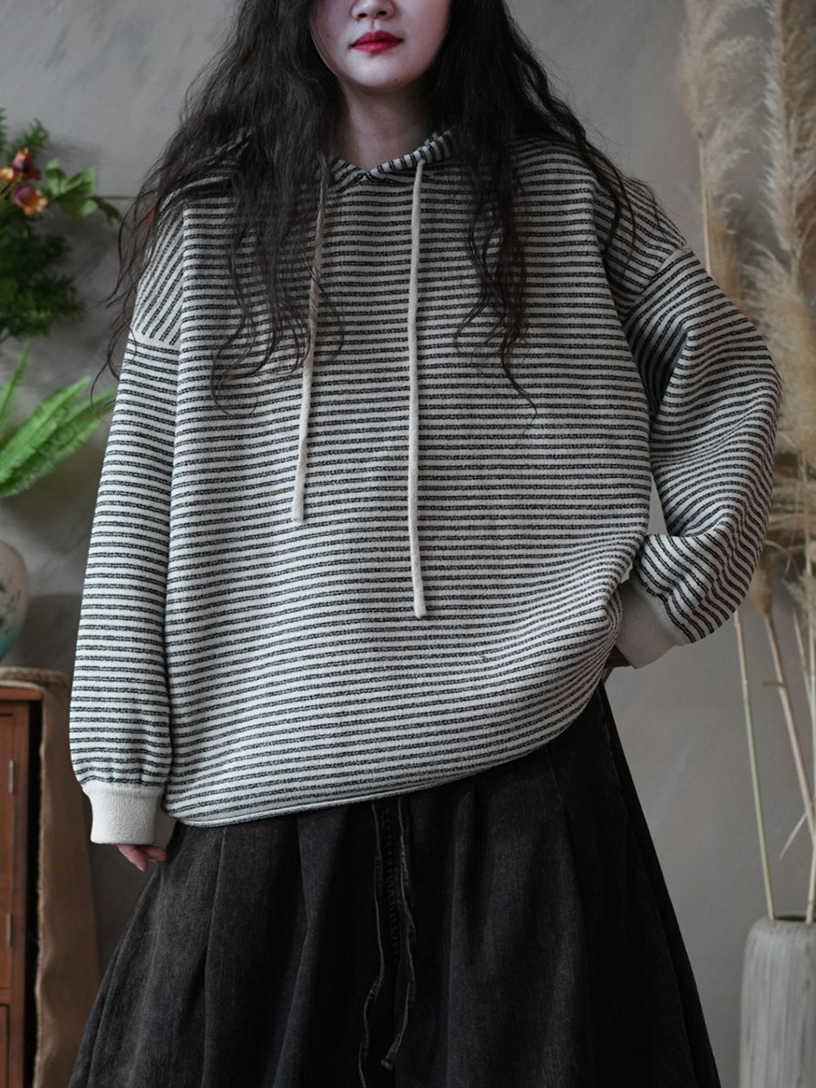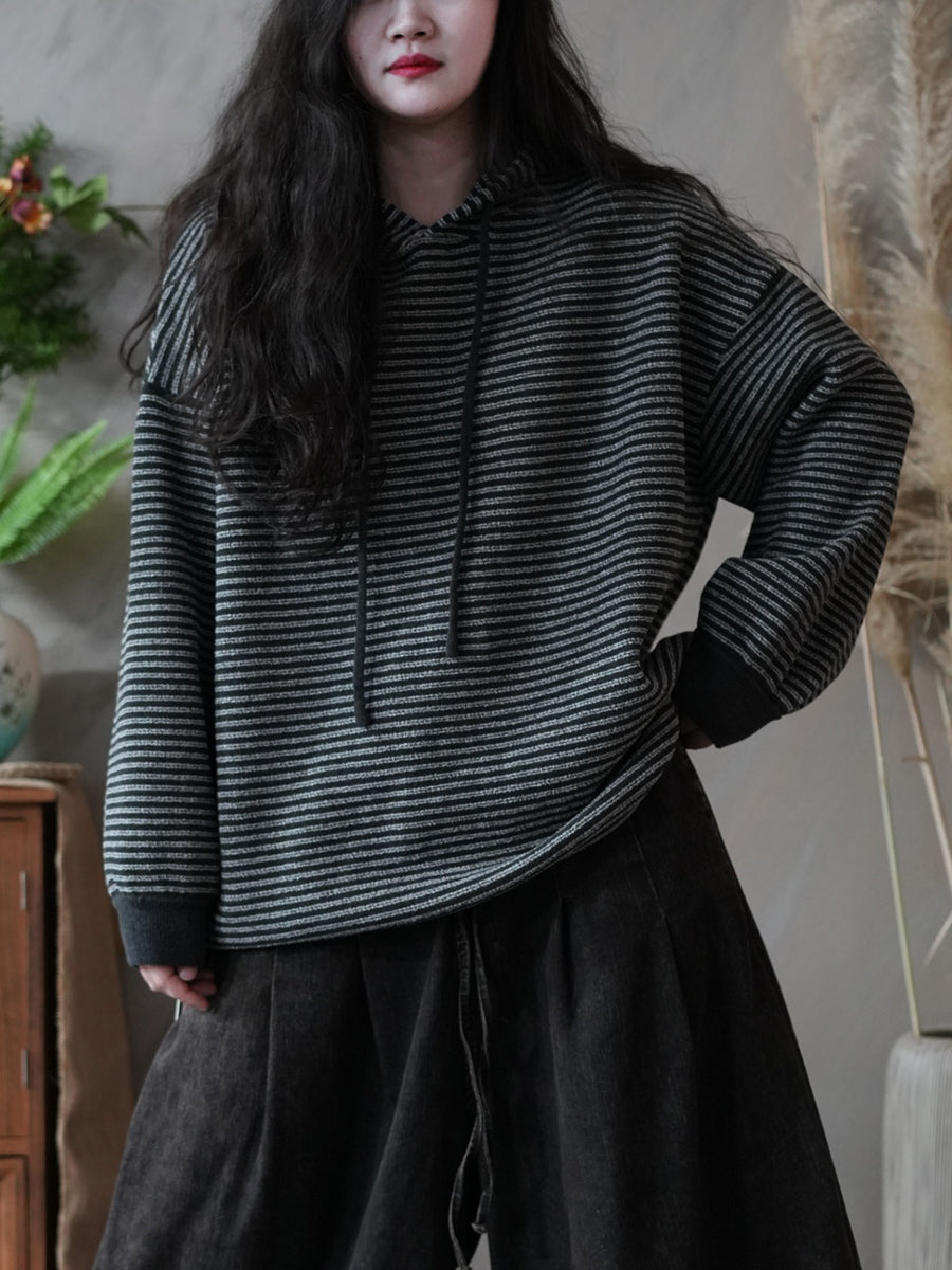 Women Winter Casual Stripe Hoodie
