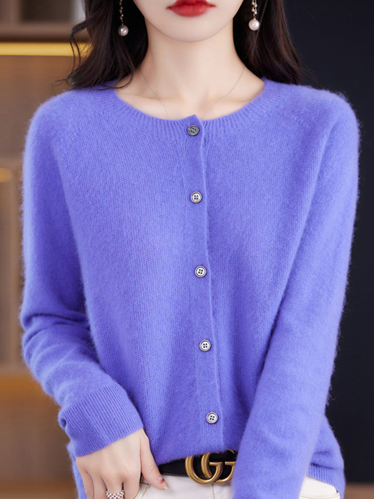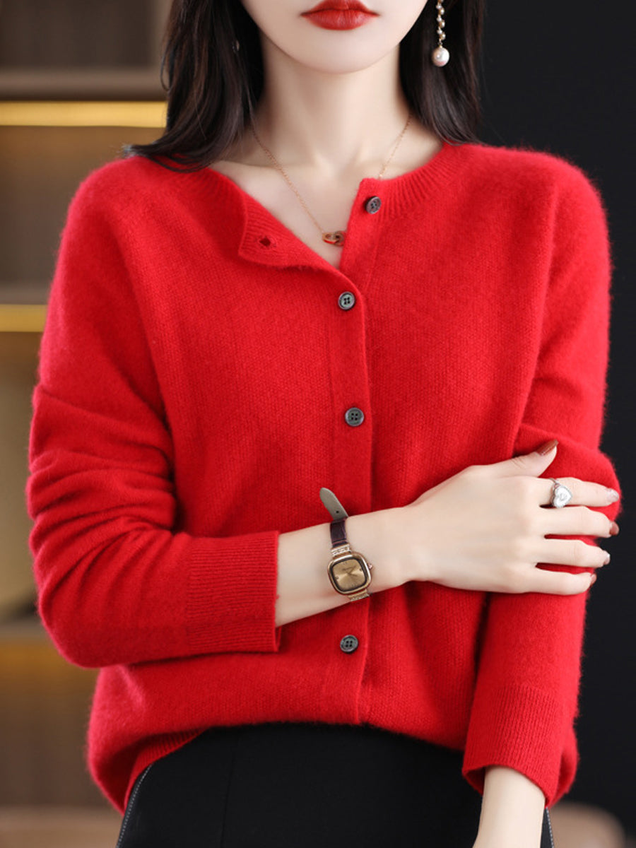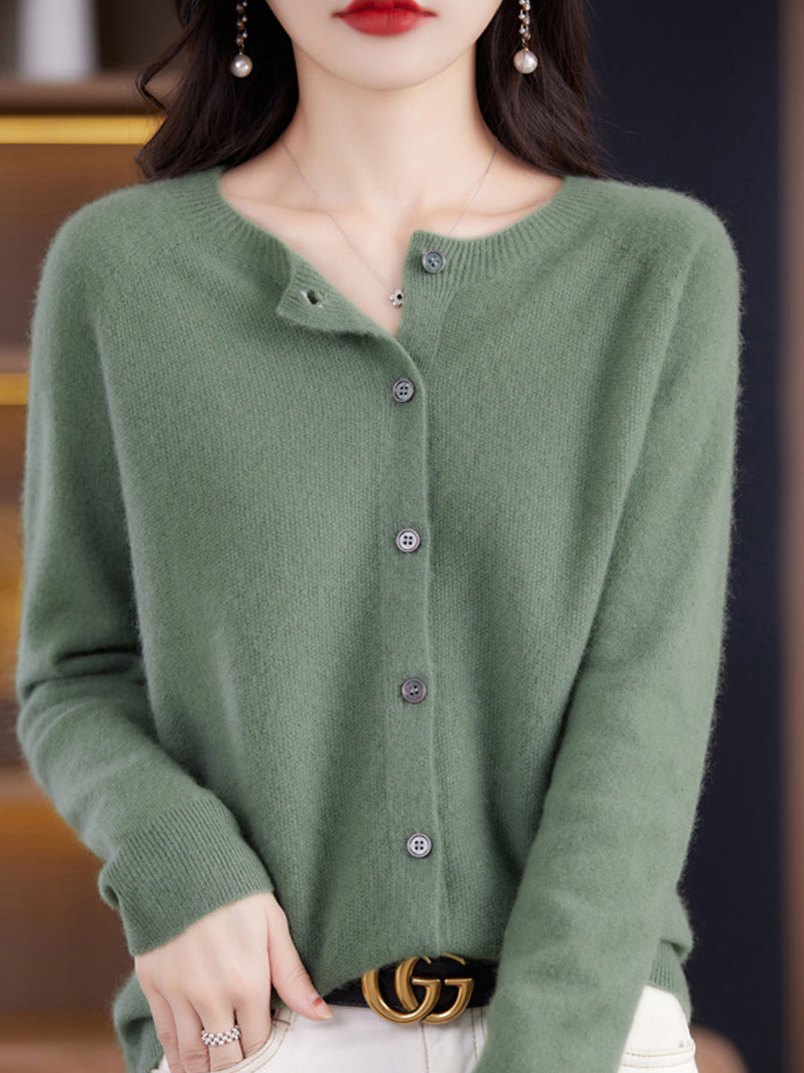 Women Autumn Casual Pure Color O-Neck Wool Sweater