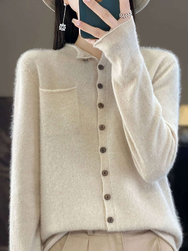 Crafted from premium wool, this essential autumn sweater delivers timeless sophistication through its understated solid colorway. The structured stand collar provides a refined silhouette, while full-length regular sleeves offer practical coverage for transitional weather. Designed with a relaxed casual aesthetic, this versatile piece seamlessly transitions between seasons, making it an indispensable addition to any wardrobe seeking both comfort and polished elegance.