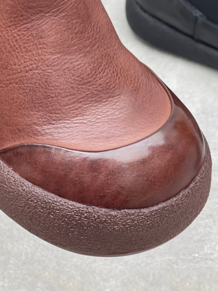 Women Winter Genuine Leather Spliced Flat Ankle Boots
