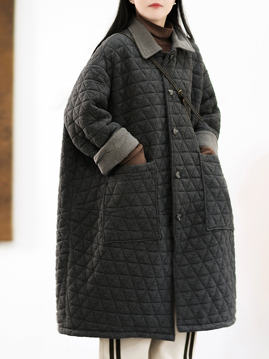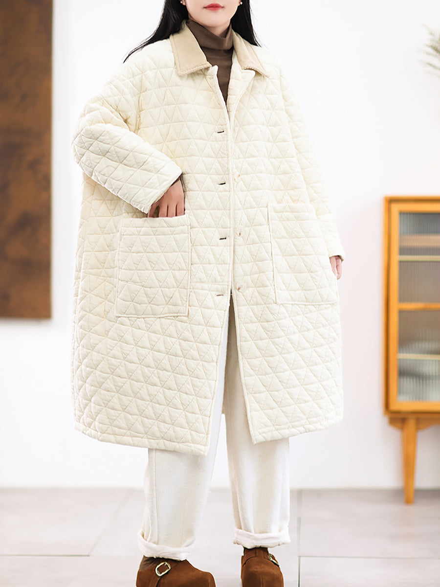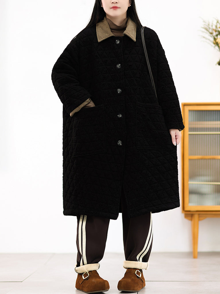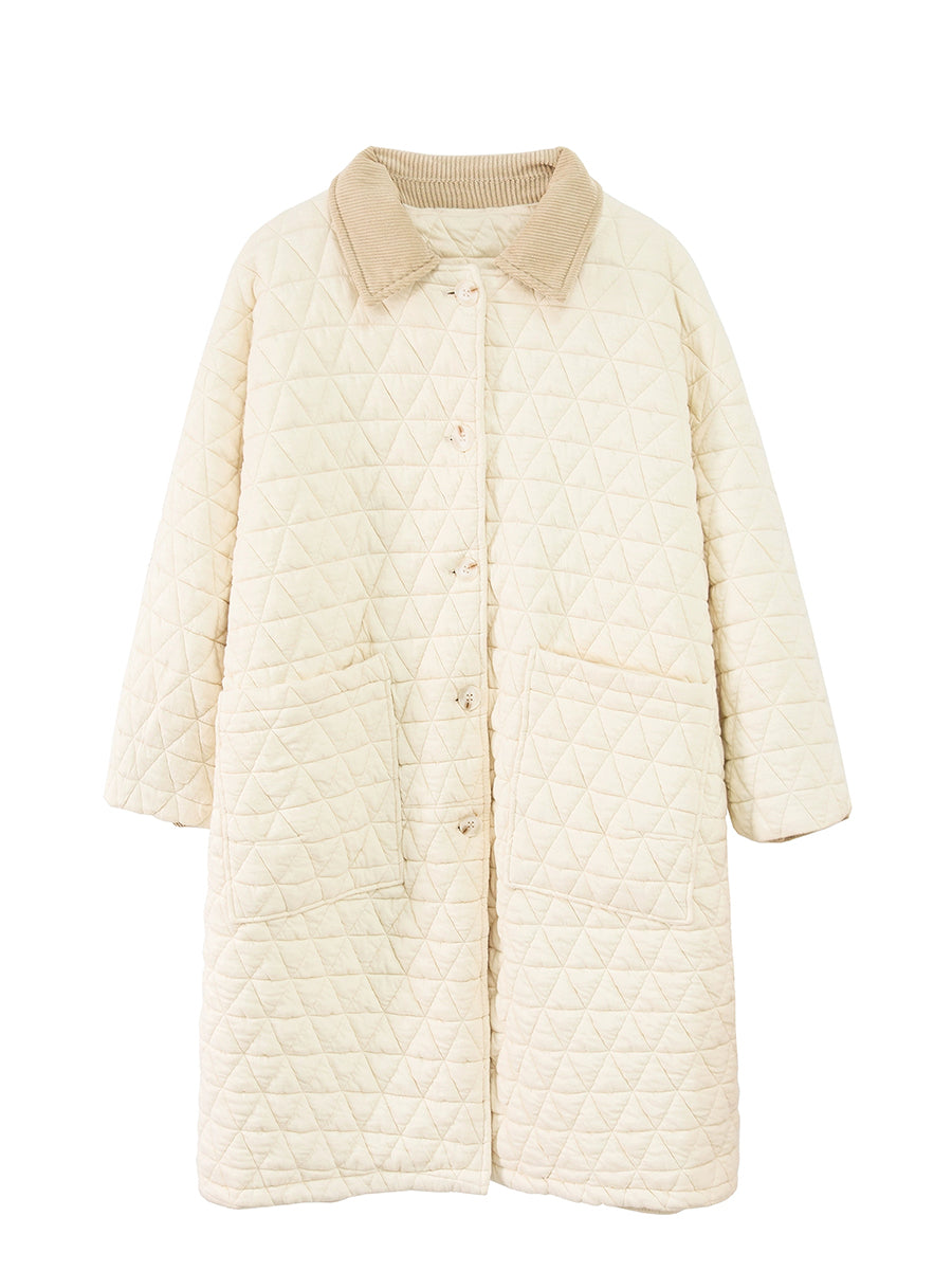 Crafted from quality cotton, this winter coat features a sophisticated colorblock design that balances contemporary style with timeless appeal. The turn-down collar and full-length raglan sleeves deliver both comfort and a refined silhouette, while the retro-inspired aesthetic adds character to your seasonal wardrobe. Ideal for autumn and winter layering, this piece combines functional warmth with understated elegance.