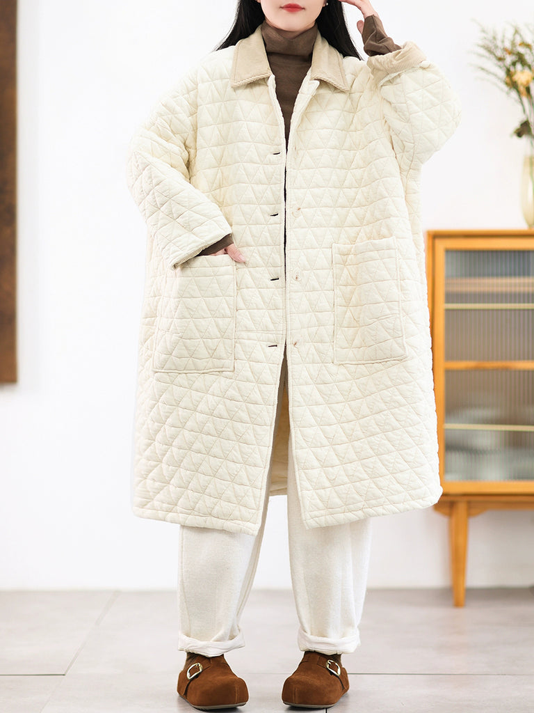 Women Winter Colorblock Turn-down Collar Padded Long Coat