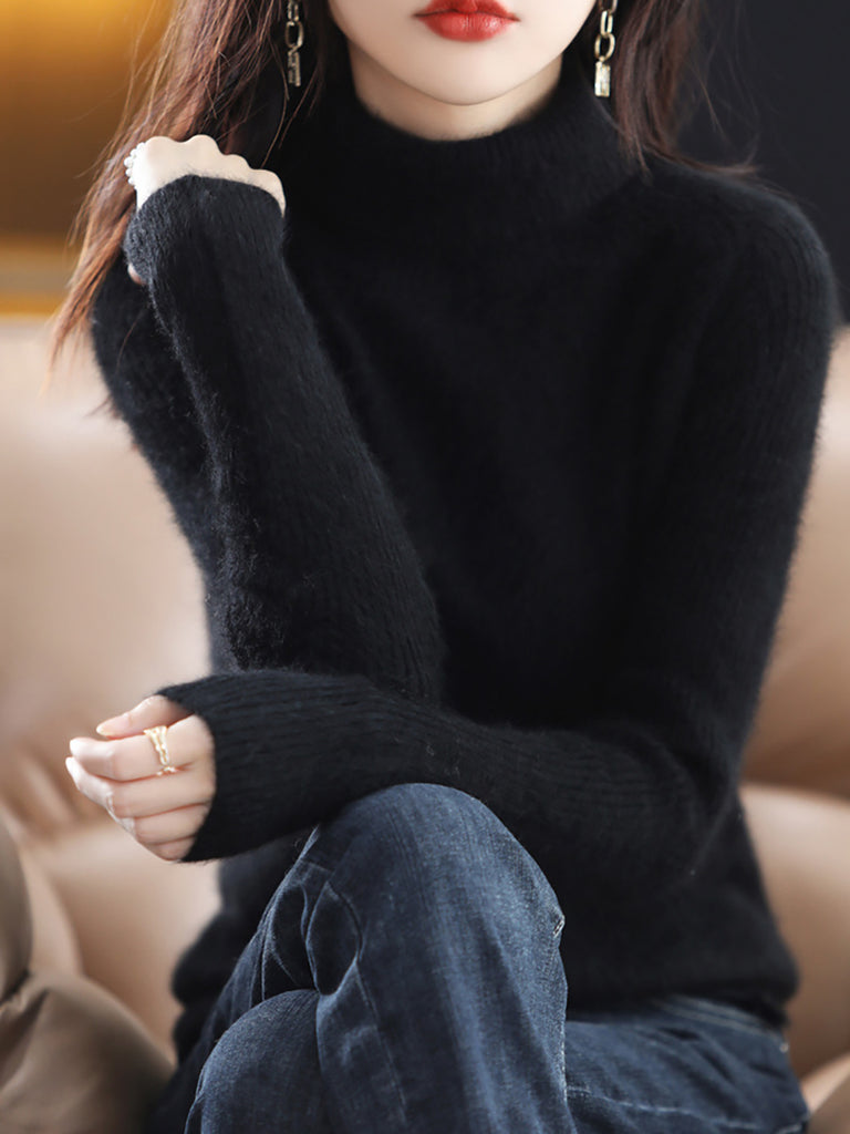 Women Winter Pure Color Turtleneck Sweater