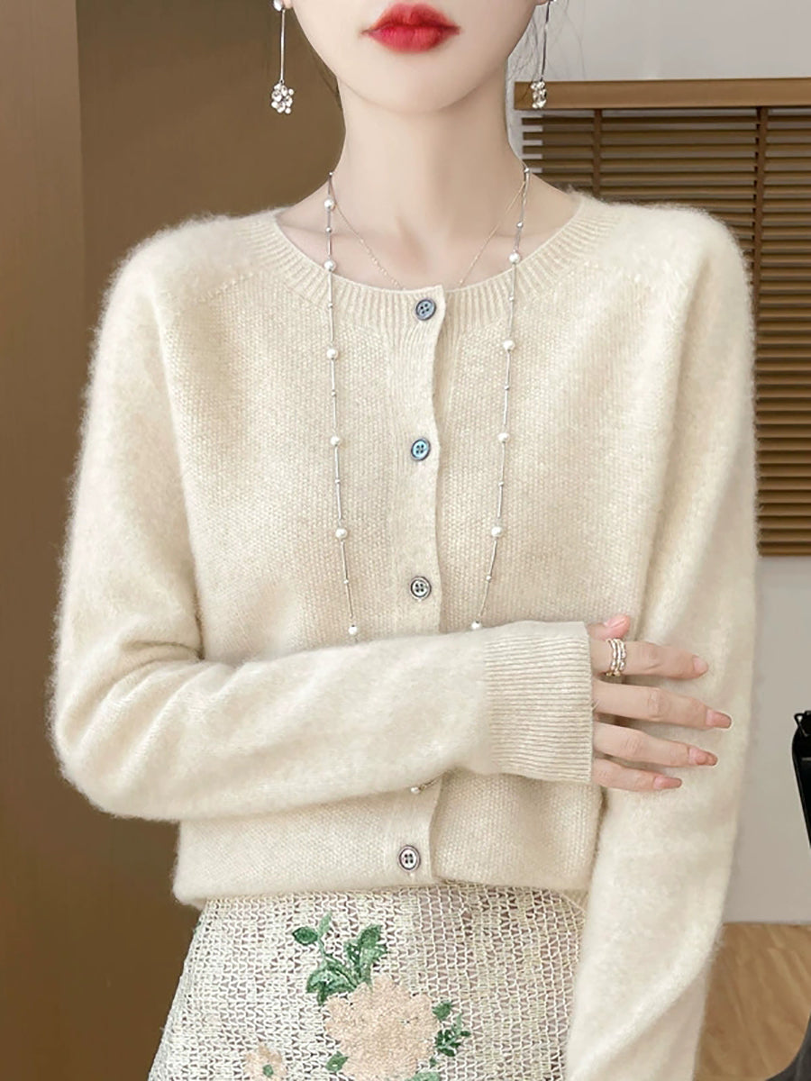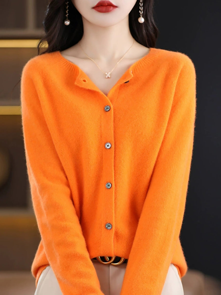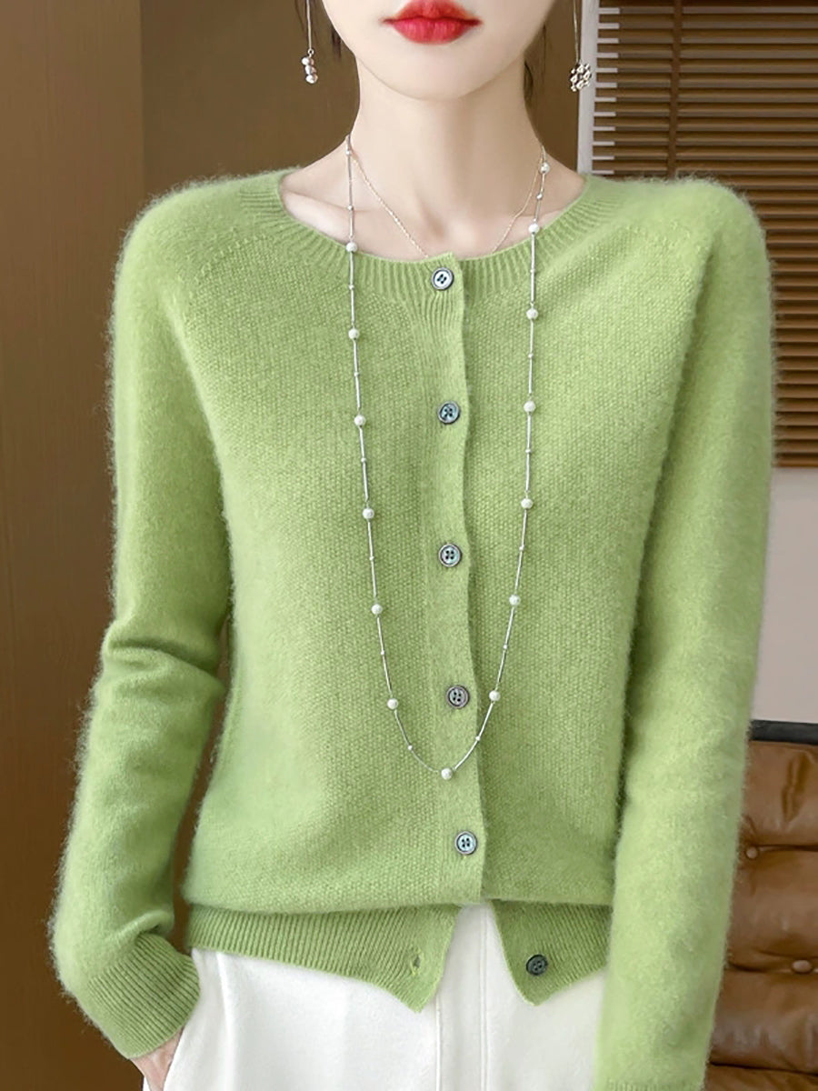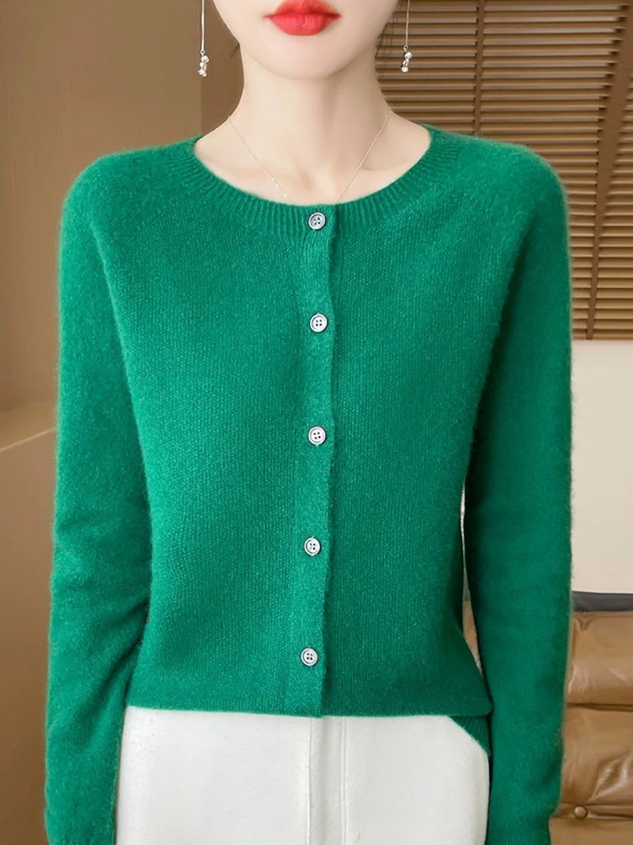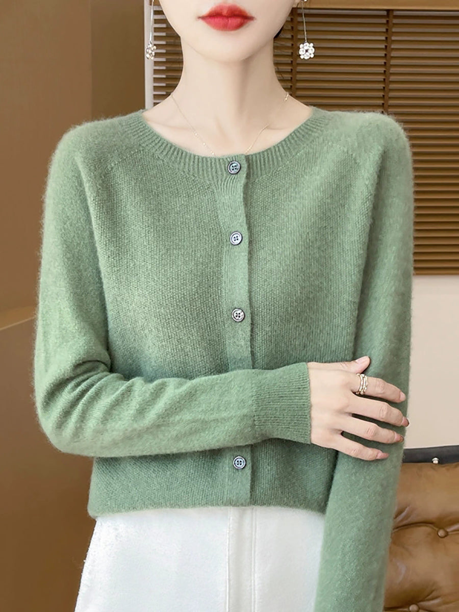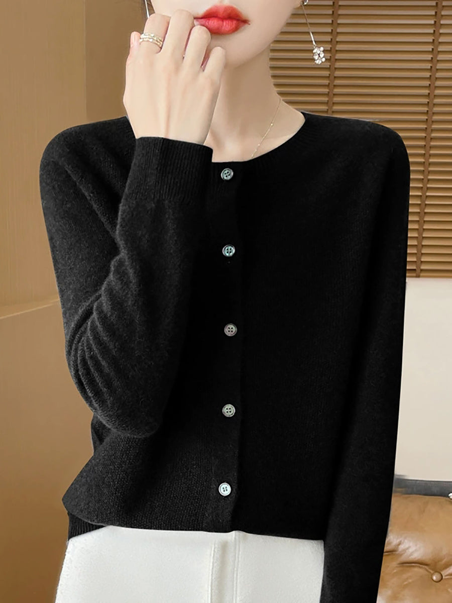 Women Autumn Artsy Pure Color O-Neck Cardigan
