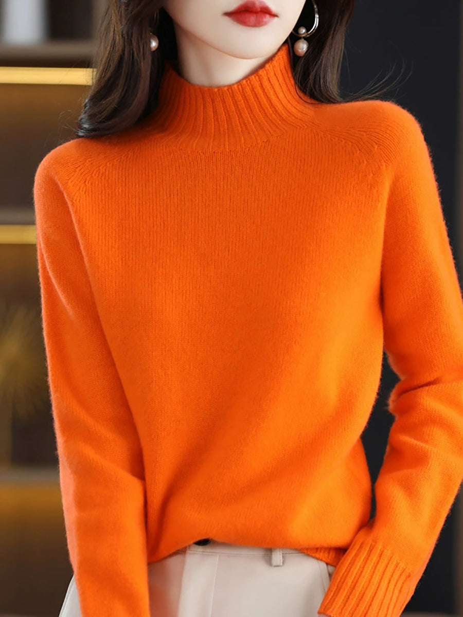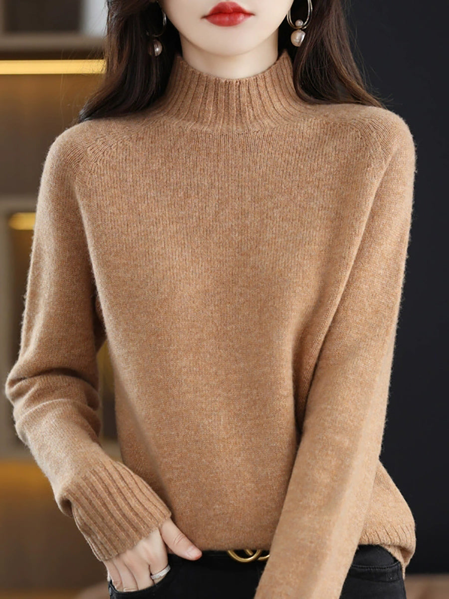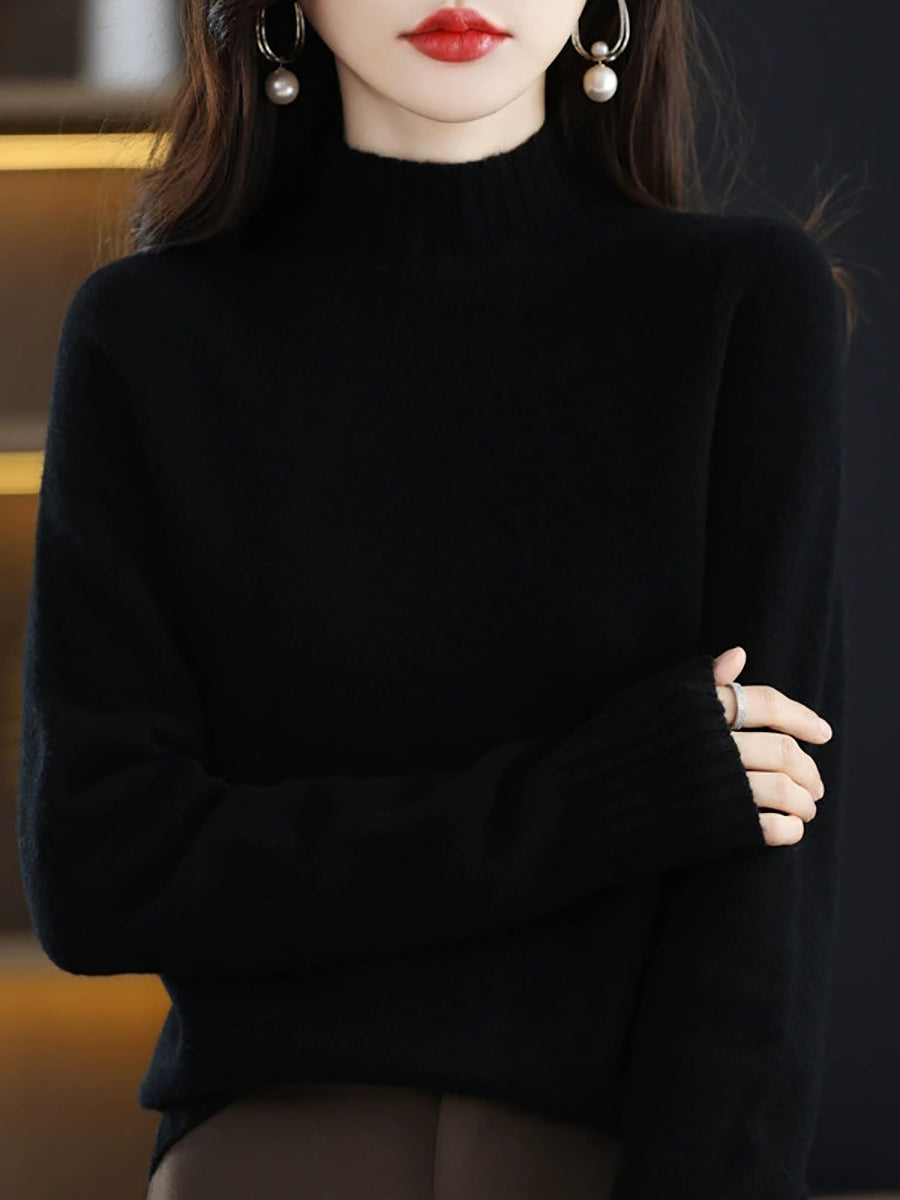 Women Casual Spring Pure Color Half-turtleneck Sweater