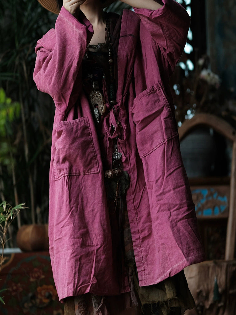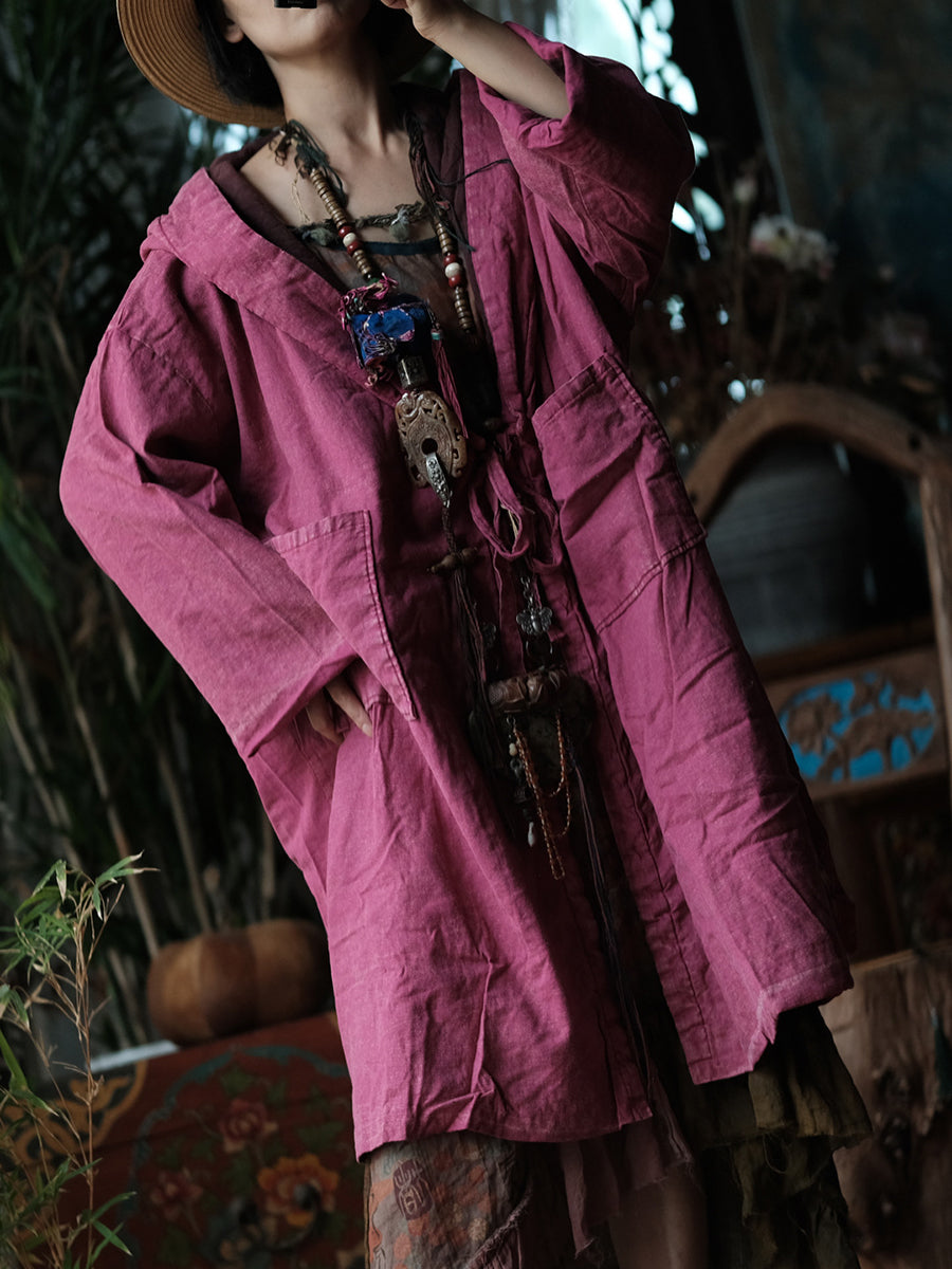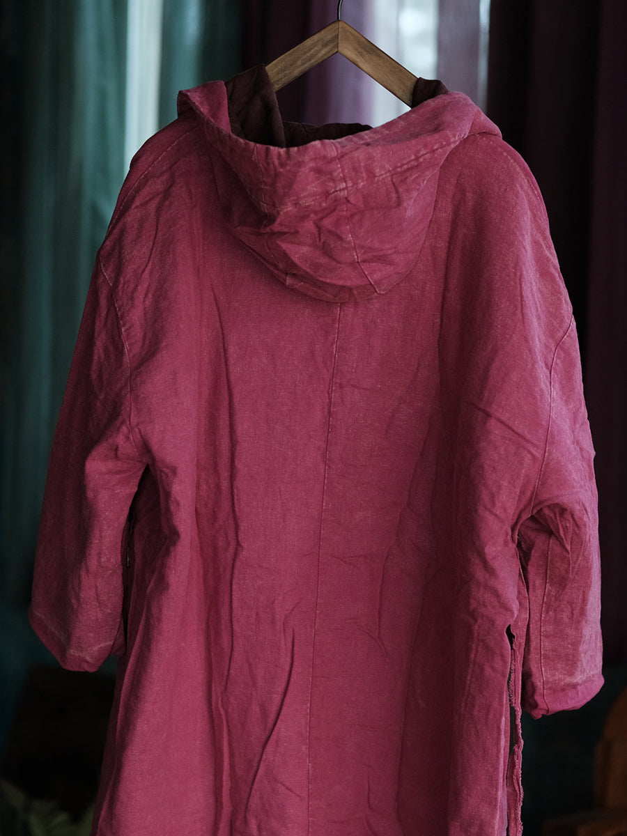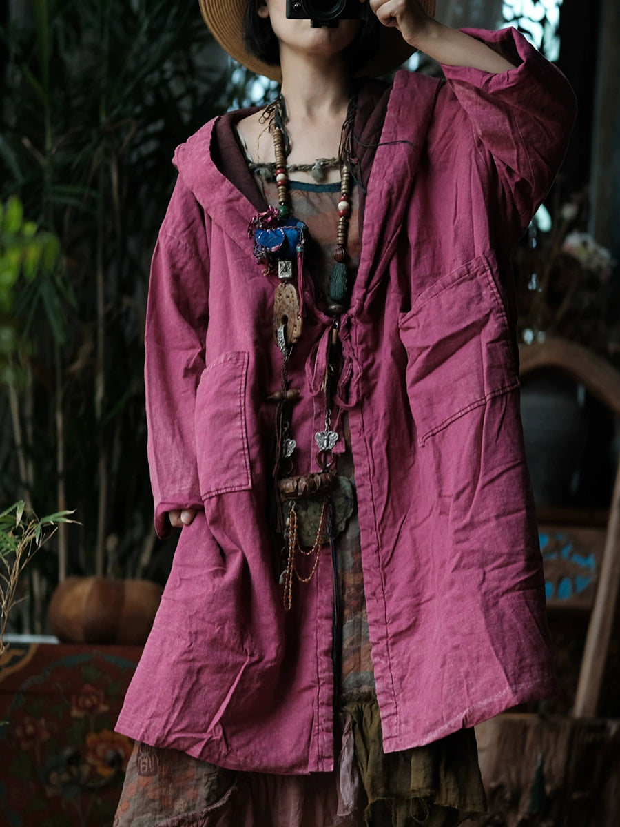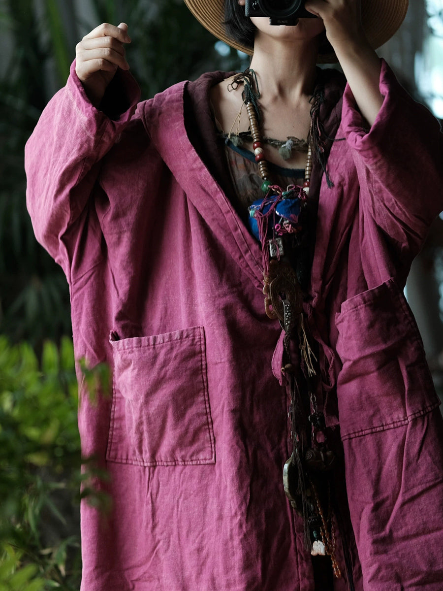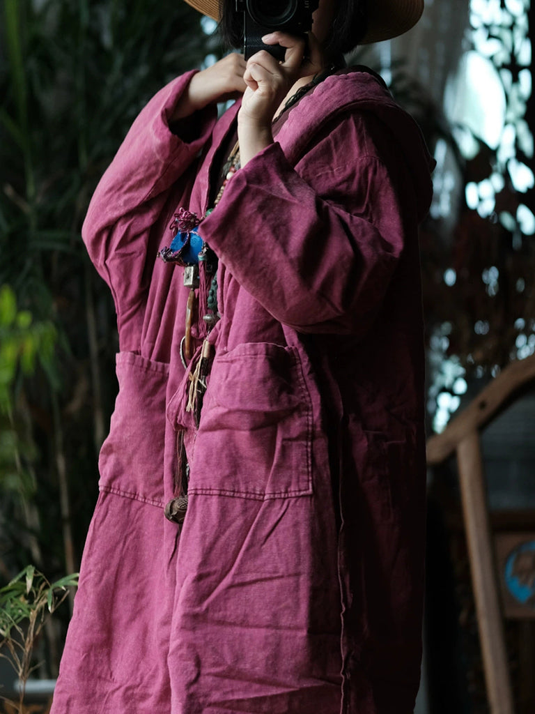 Women Winter Retro Pure Color Hooded Padded Coat