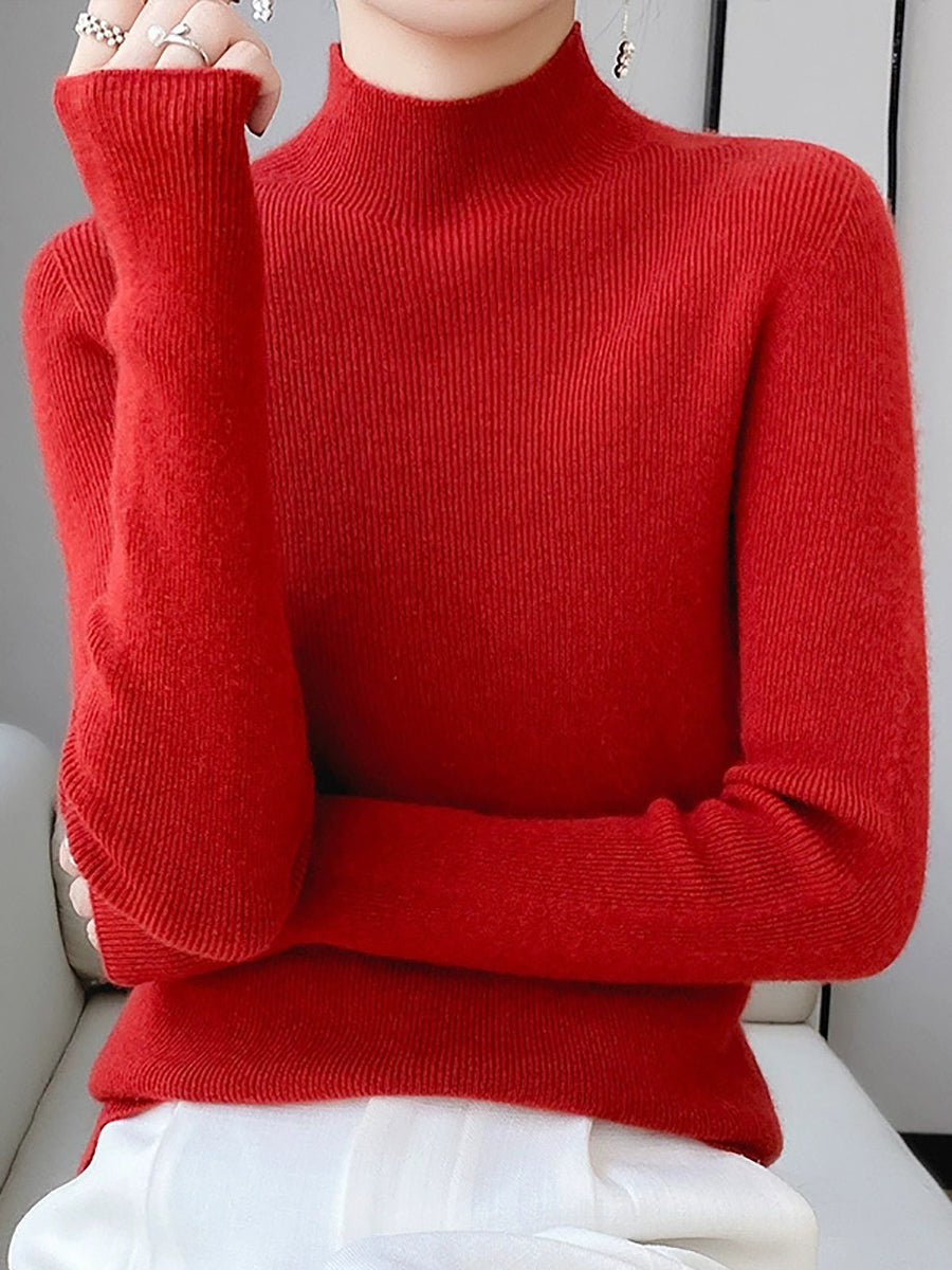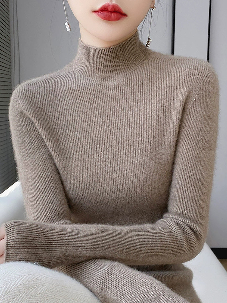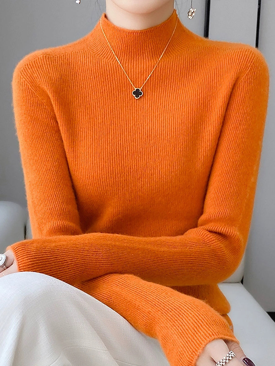 Women Winter Pure Color Wool Half-Turtleneck Sweater