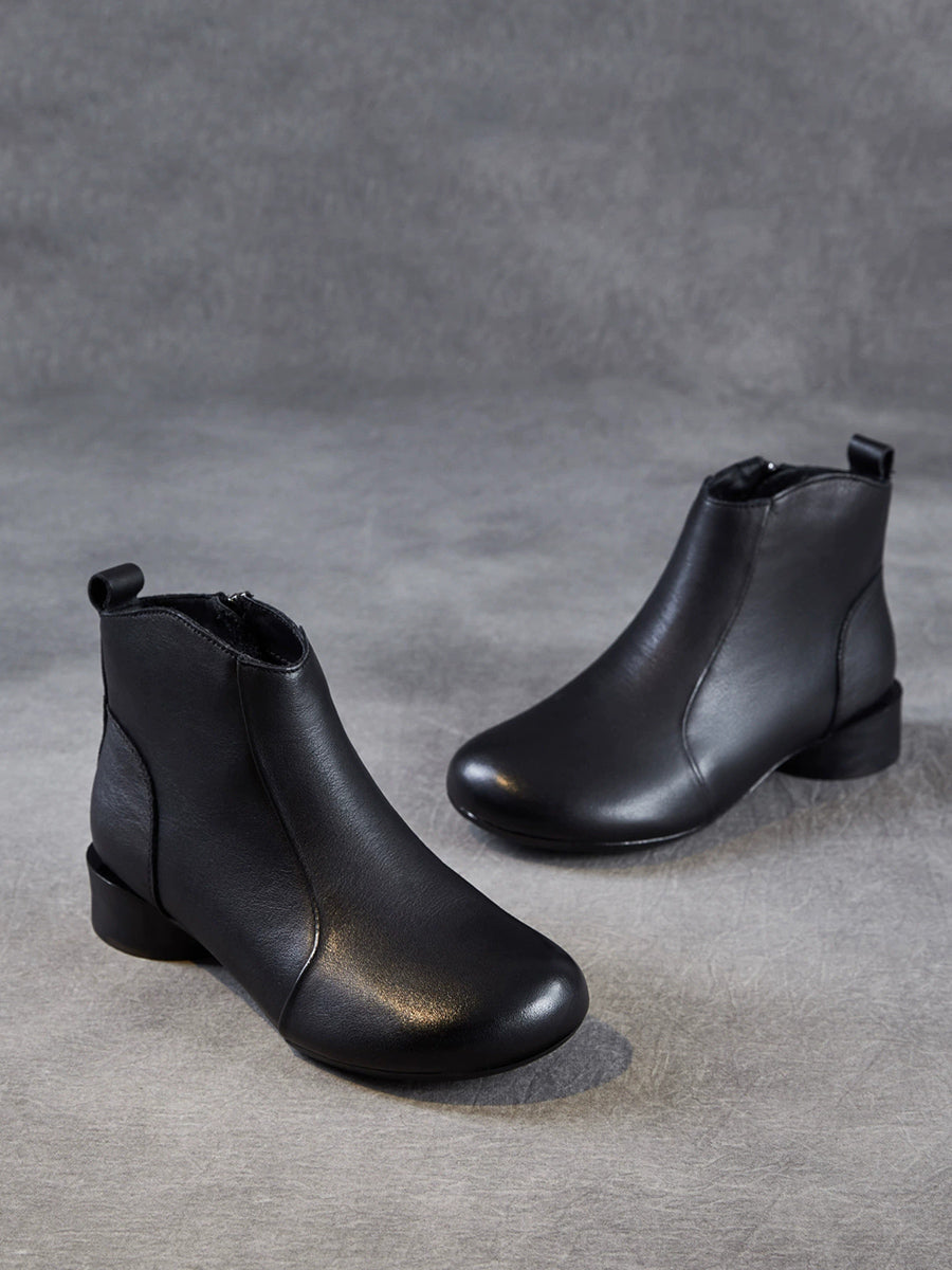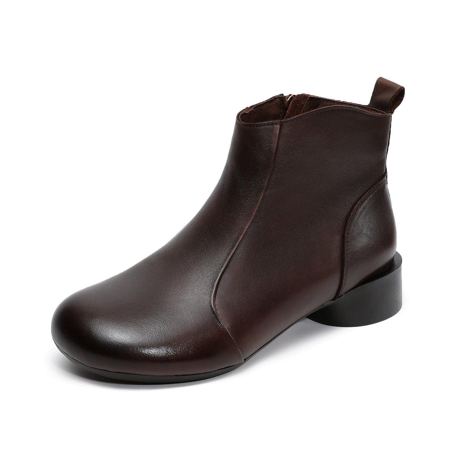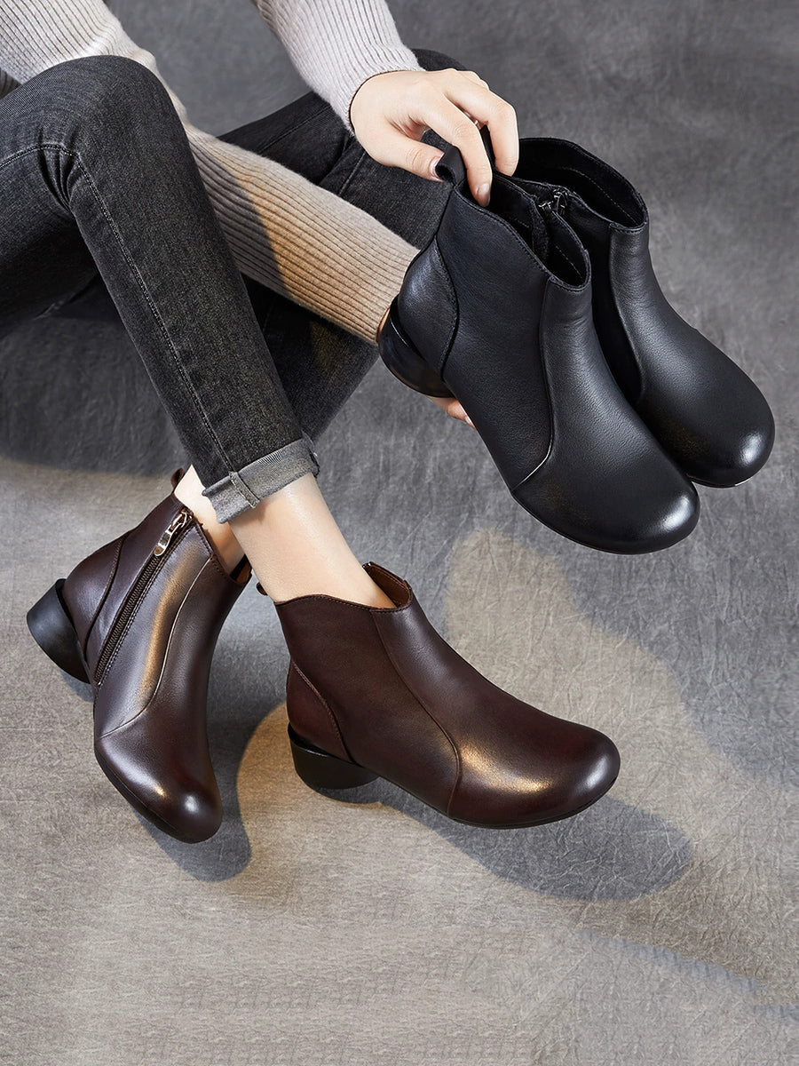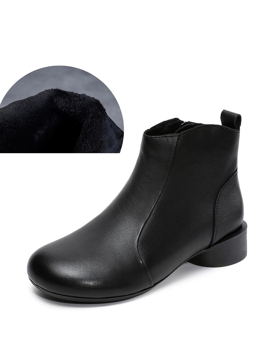 Women Winter Genuine Leather Low Heel Ankle Boots