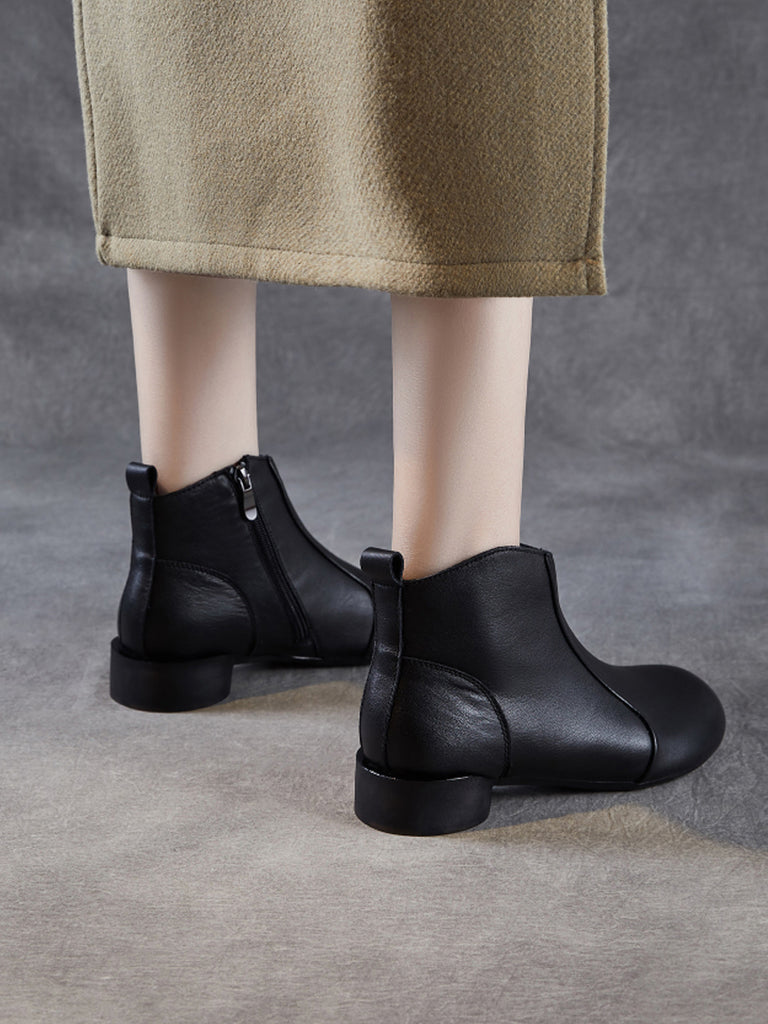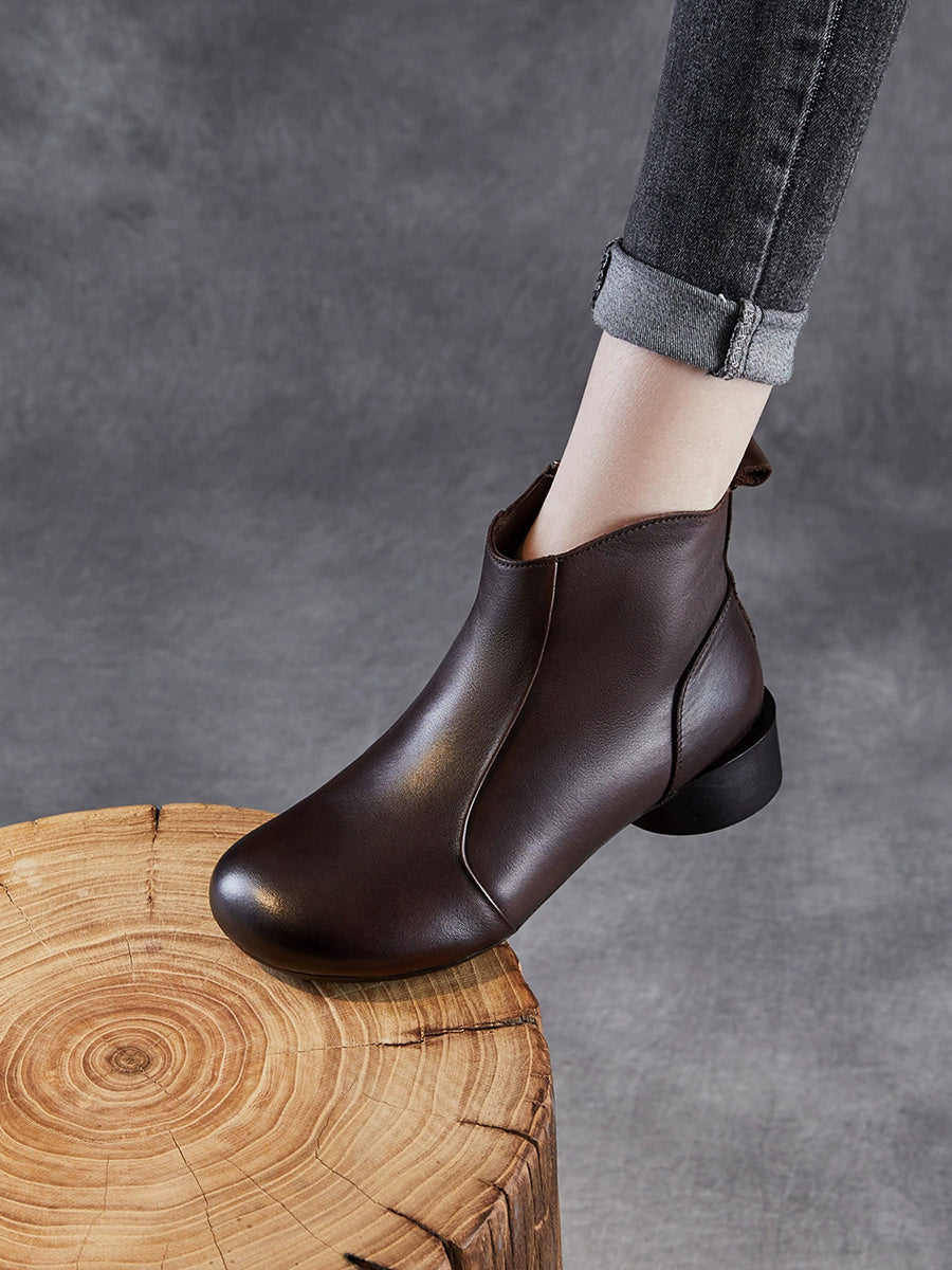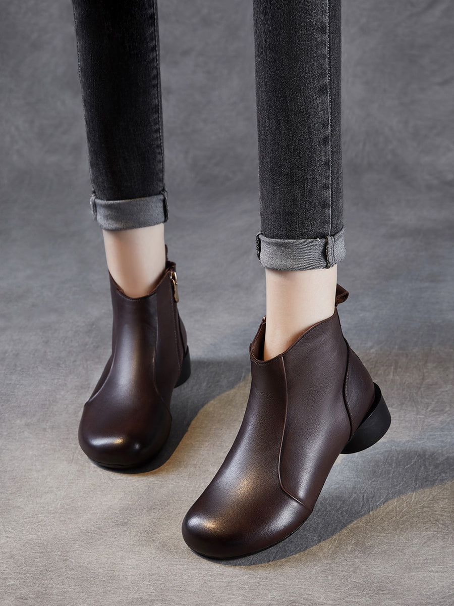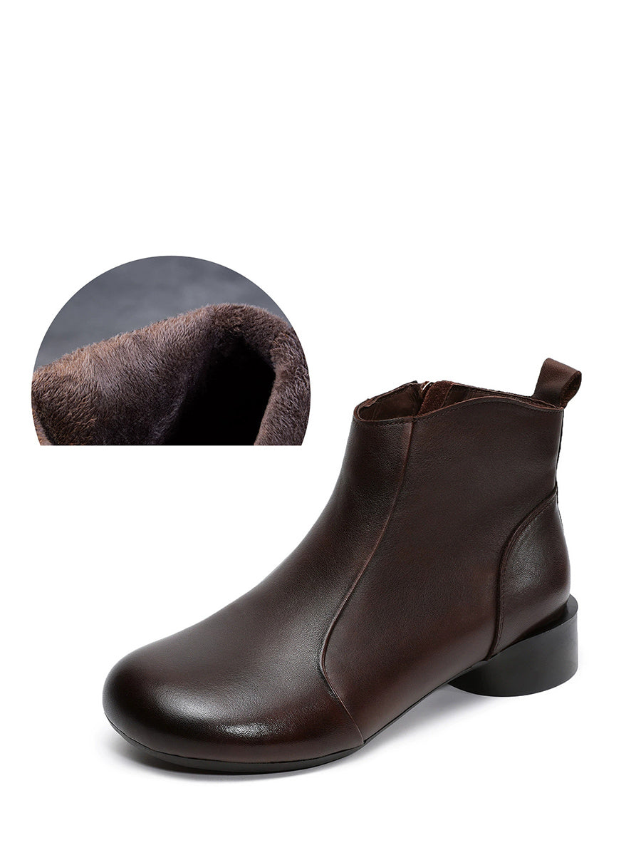 Women Winter Genuine Leather Low Heel Ankle Boots