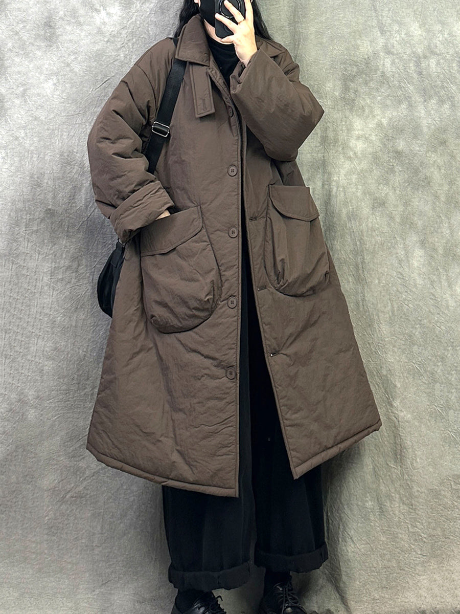 Women Winter Pure Color Padded Turn-down Collar Coat