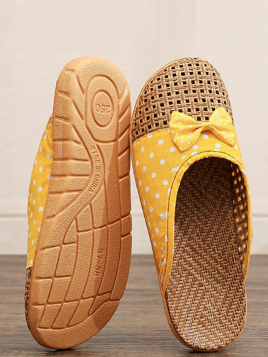 Couple Summer Straw Weave Spliced Dot Slippers