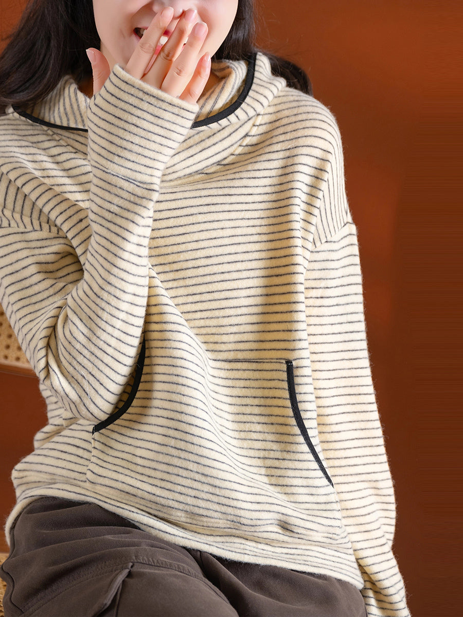 Women Casual Autumn Stripe Pocket Soft Hoodie
