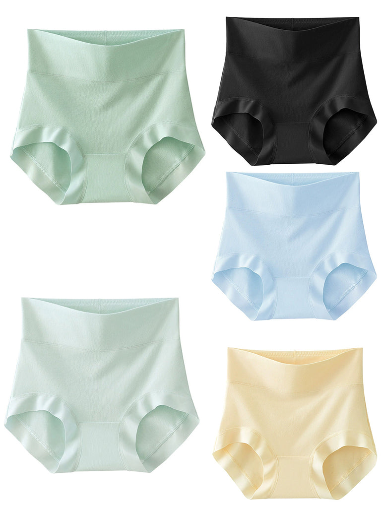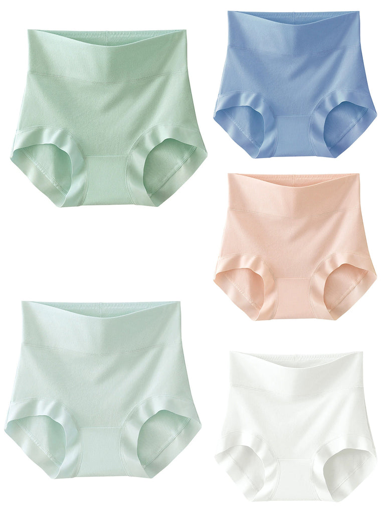 5 Pieces Women High Waist Pure Color Cotton Underwear