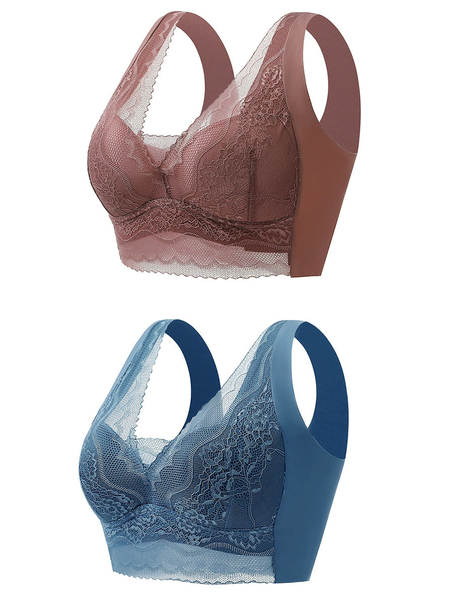 2 Pieces Women Artsy Lace One-piece Wireless Bra