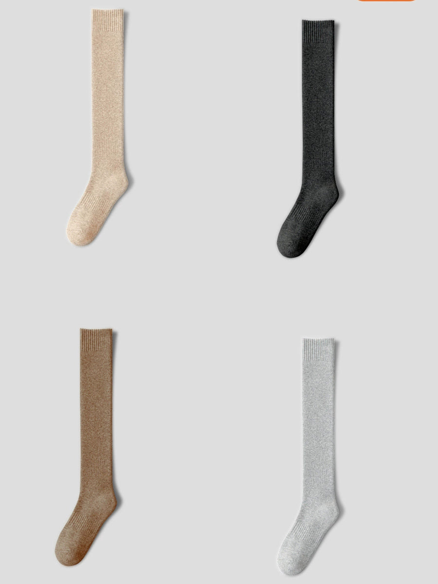 4 Pairs Women Winter Casual Pure Color Calf Socks