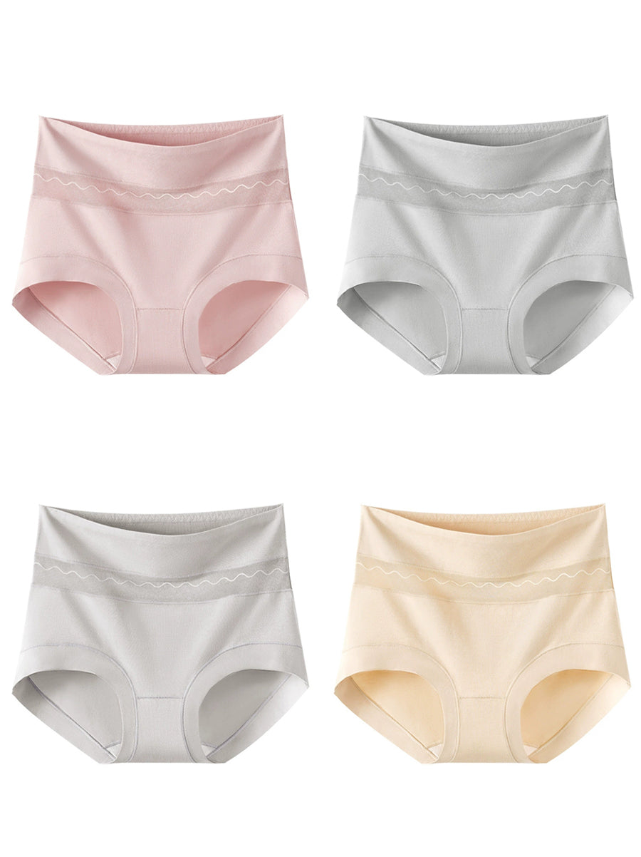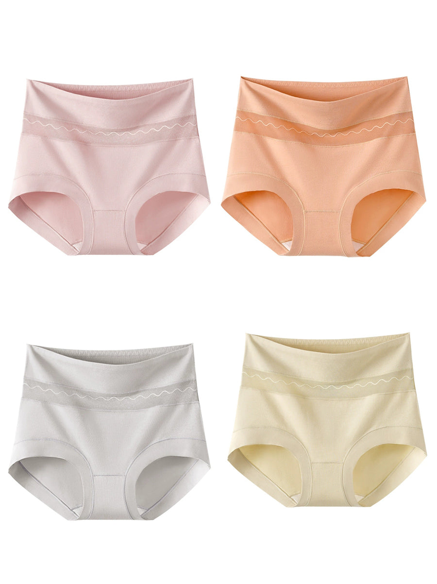 4 Pieces Women Artsy Flower High Waist Underwear