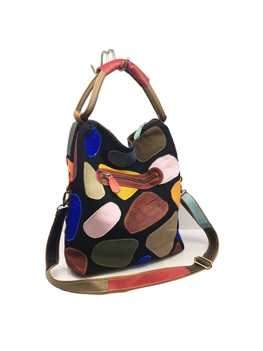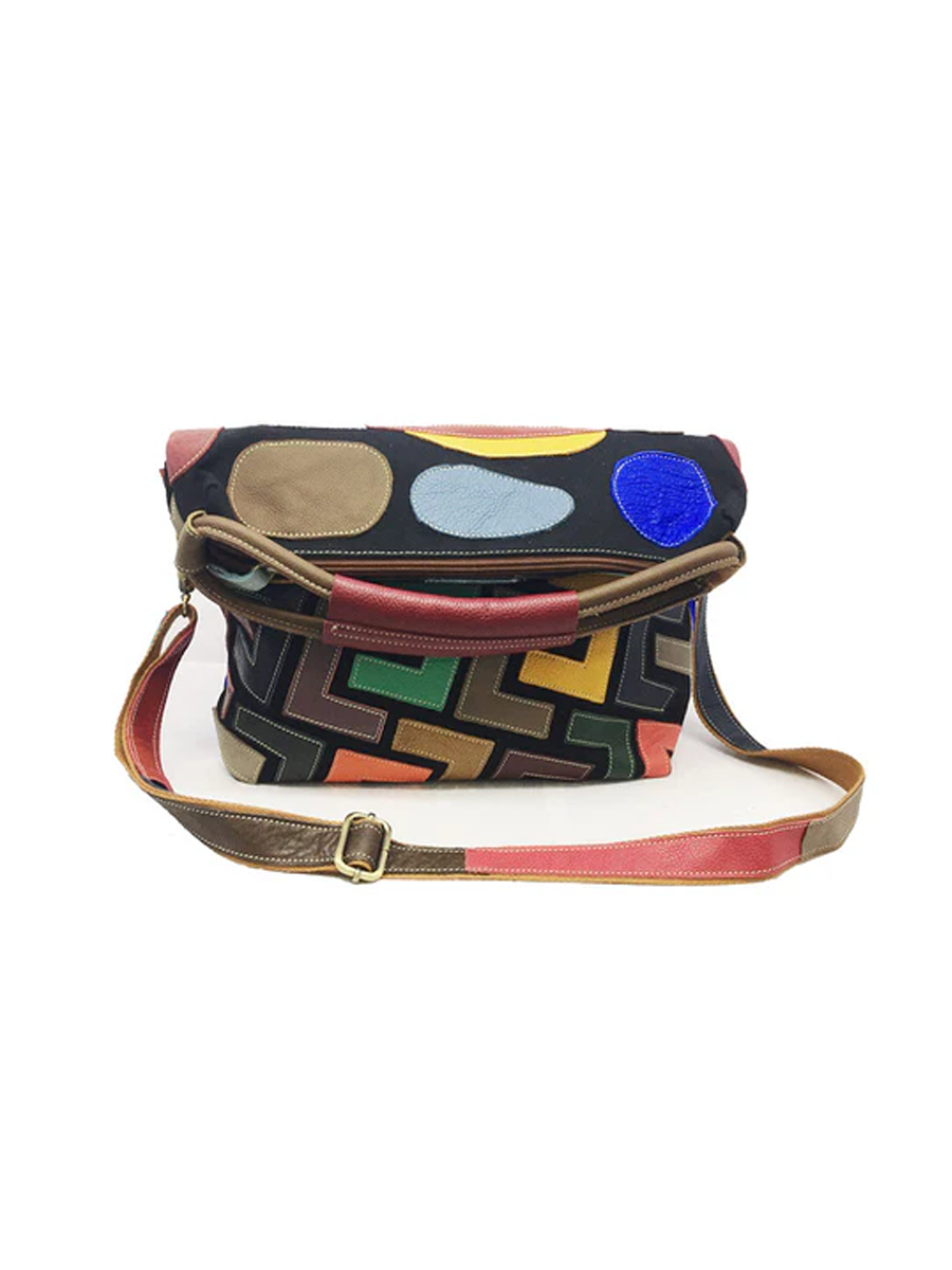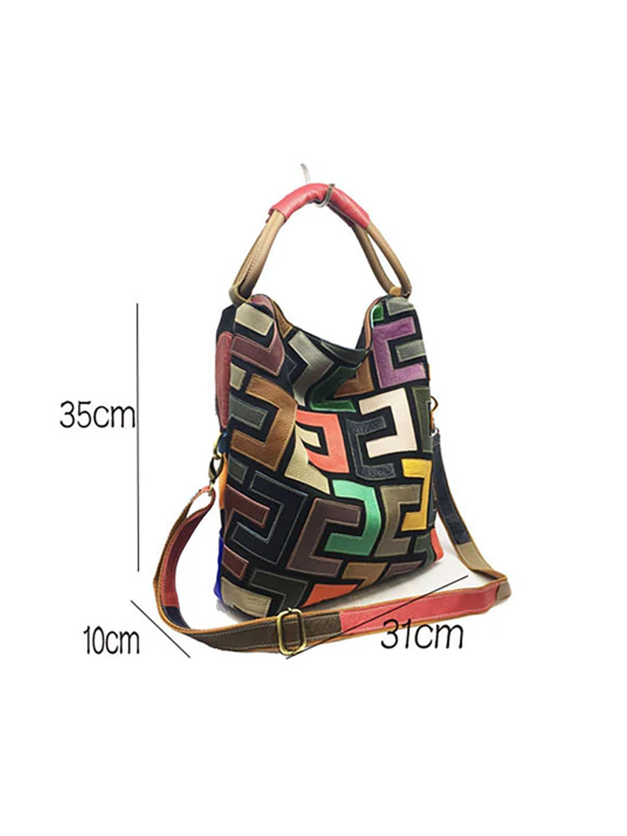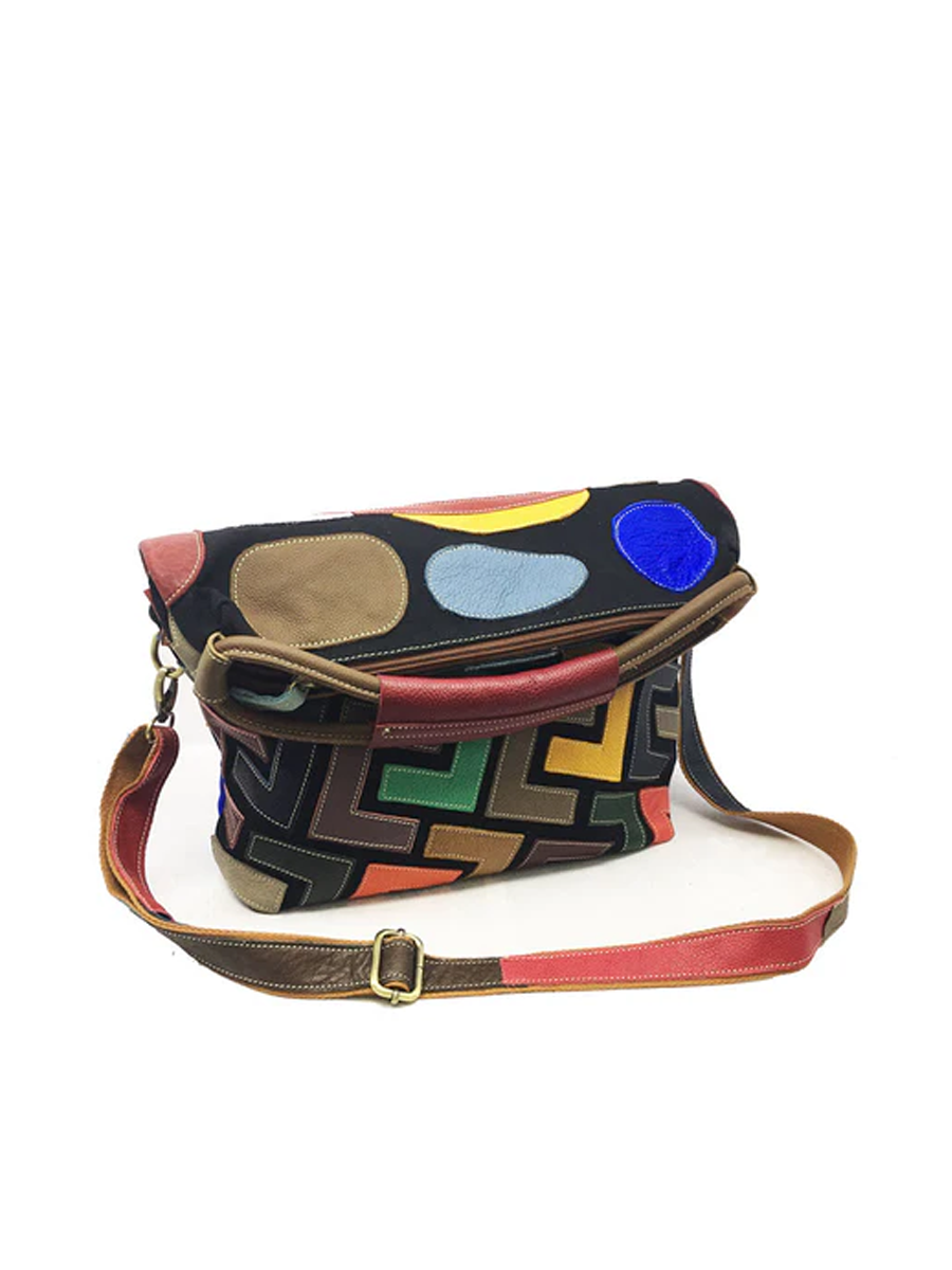 Multicolor Graphic Patchwork Leather Shoulder Bag