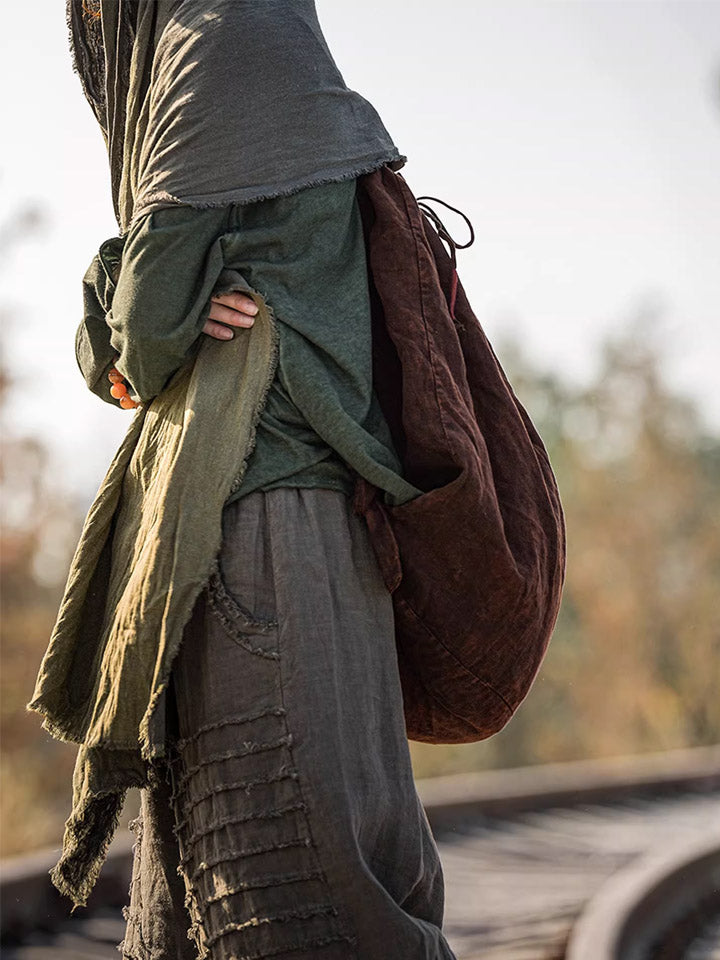 Vintage Plant-dyed Linen Large Capacity Backpack