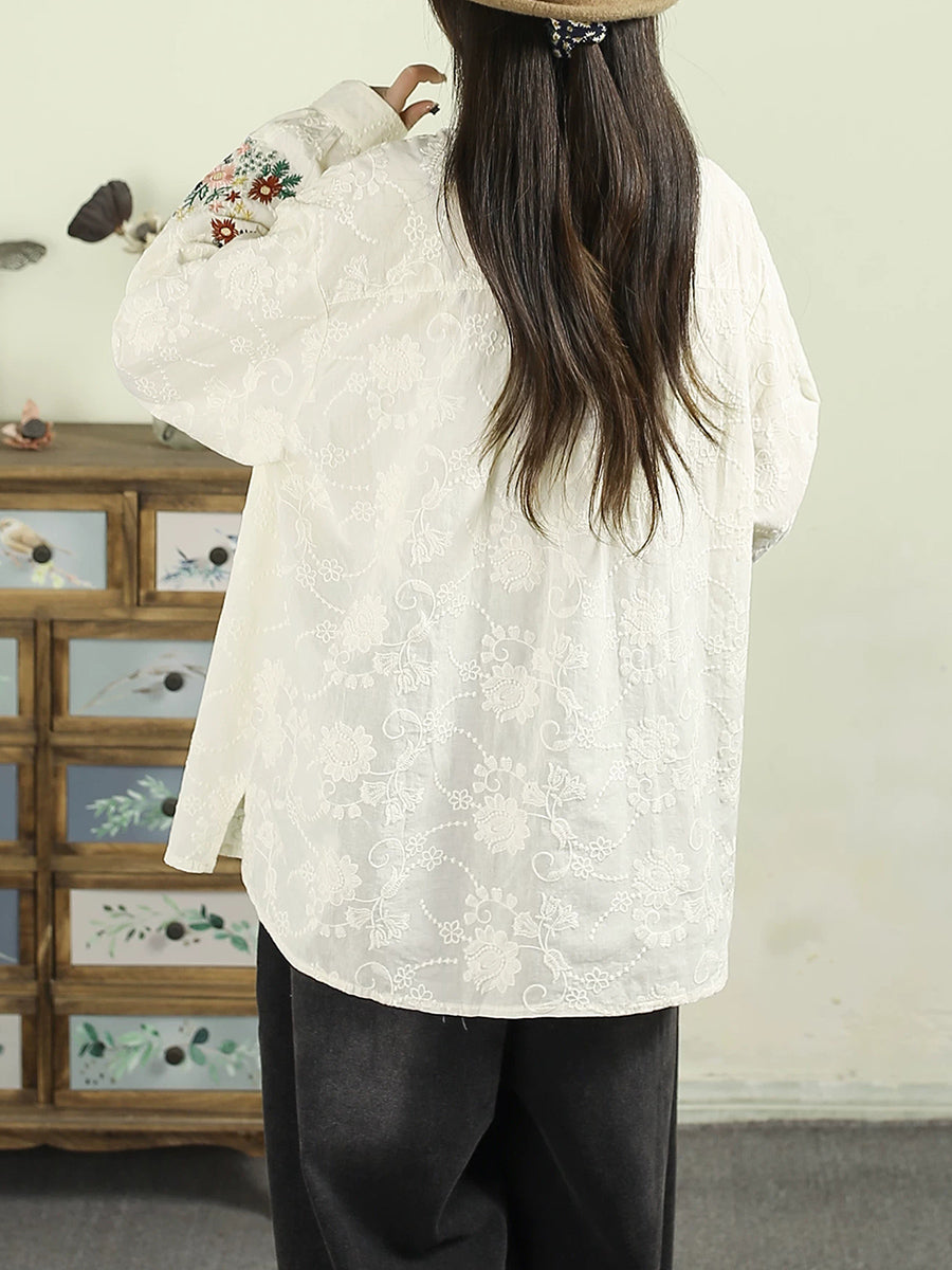Women Artsy Autumn Embroidery 100%Cotton Shirt