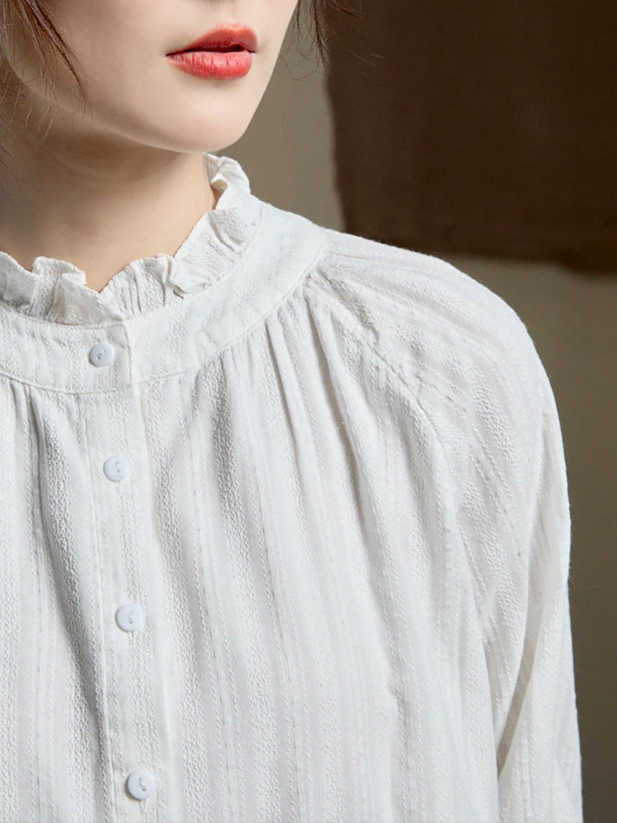 Women Artsy Spring Jacquard Lace Collar Shirt