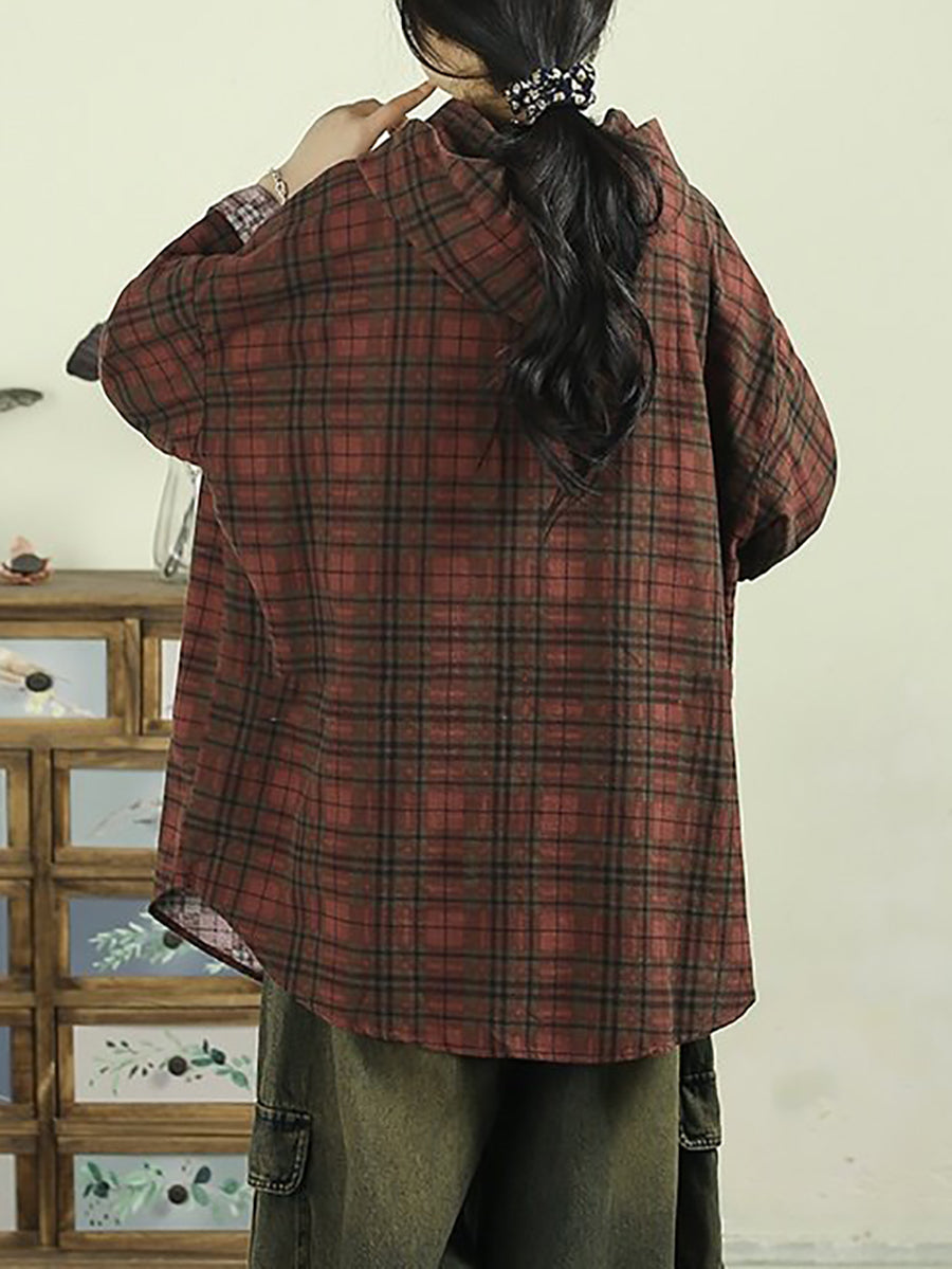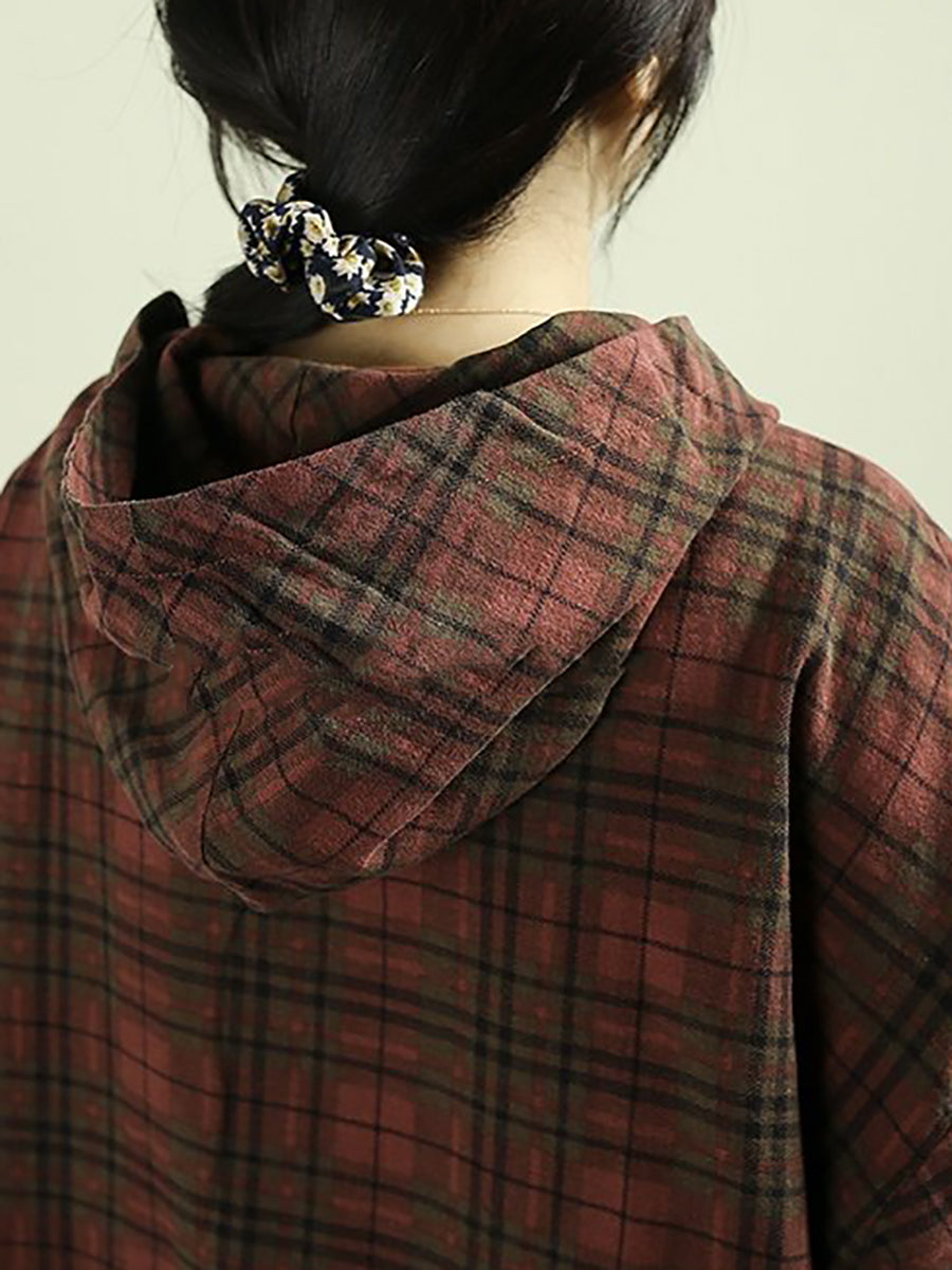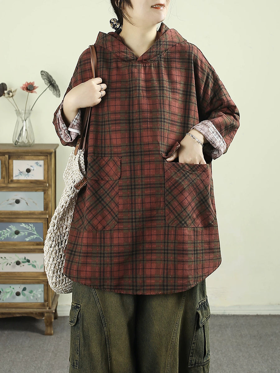Women Artsy Spring Plaid Cotton Hoodie