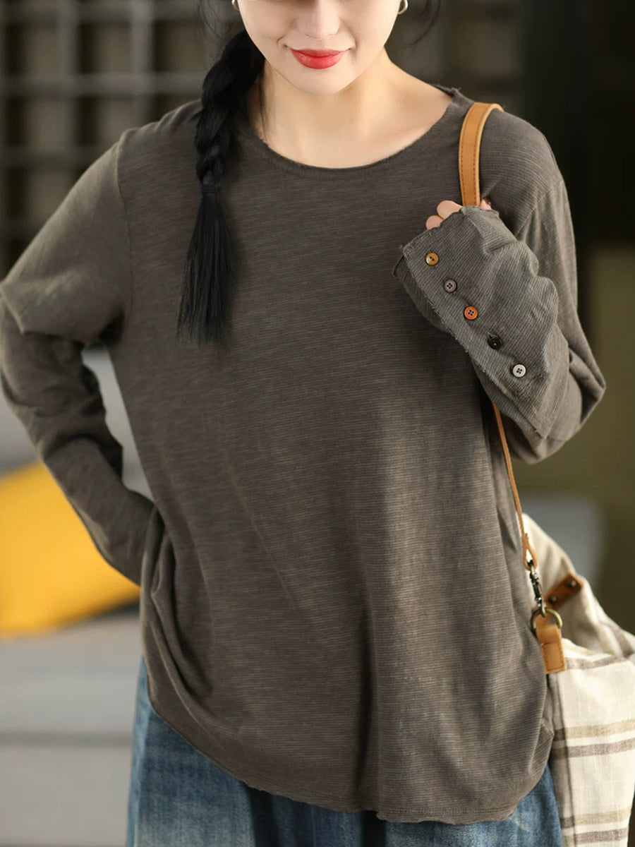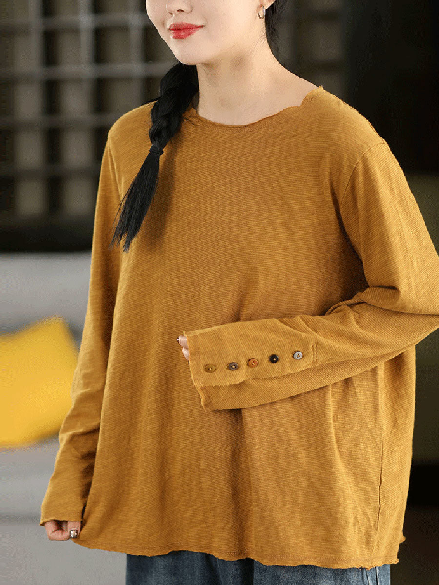 Women Artsy Spring Pure Color Cotton O-Neck Blouse