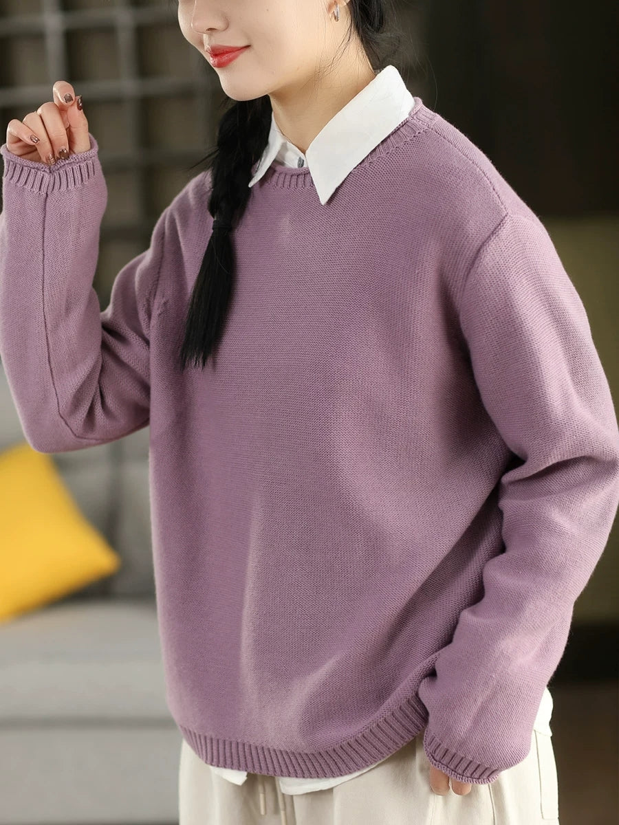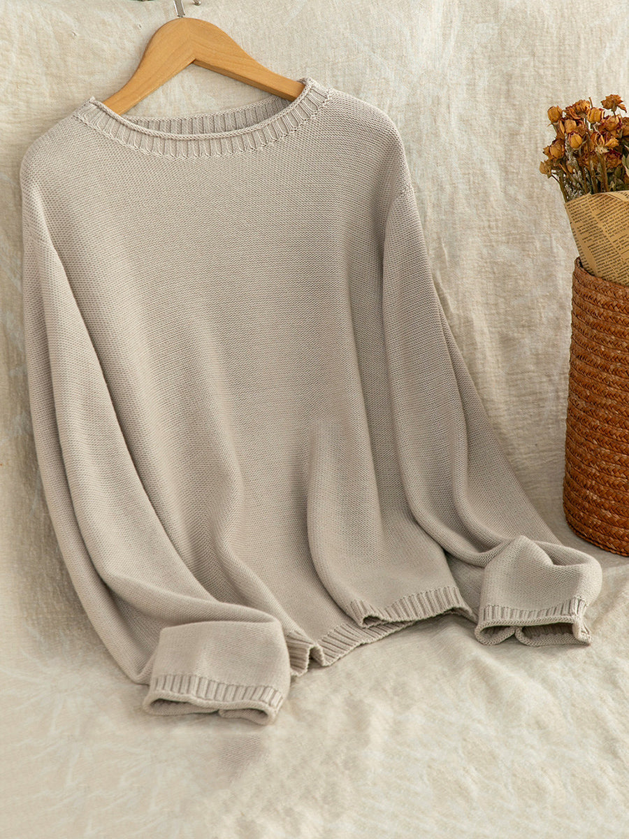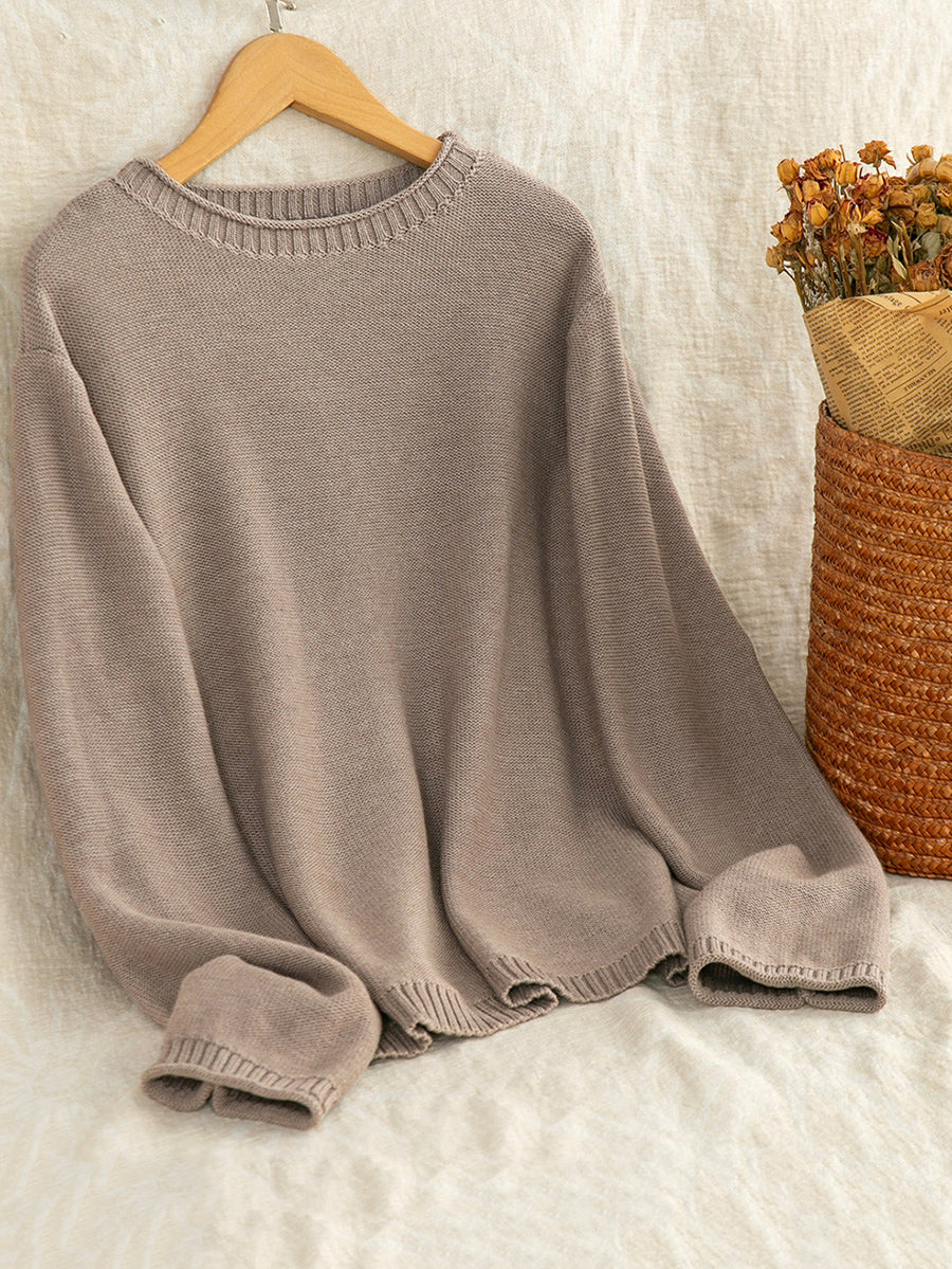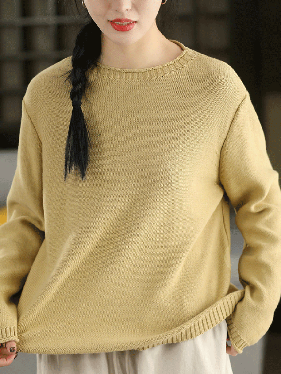 Women Artsy Spring Pure Color O-Neck Sweater