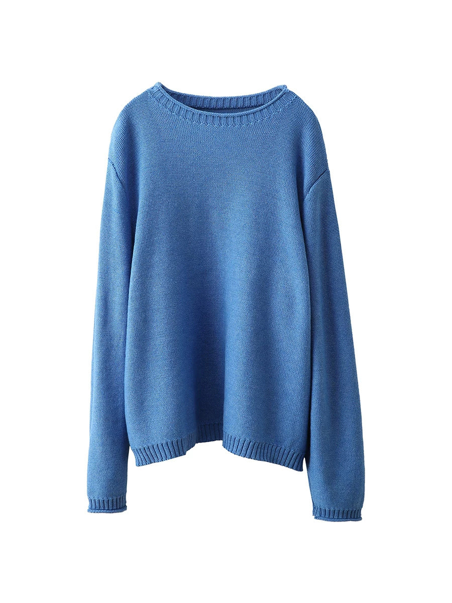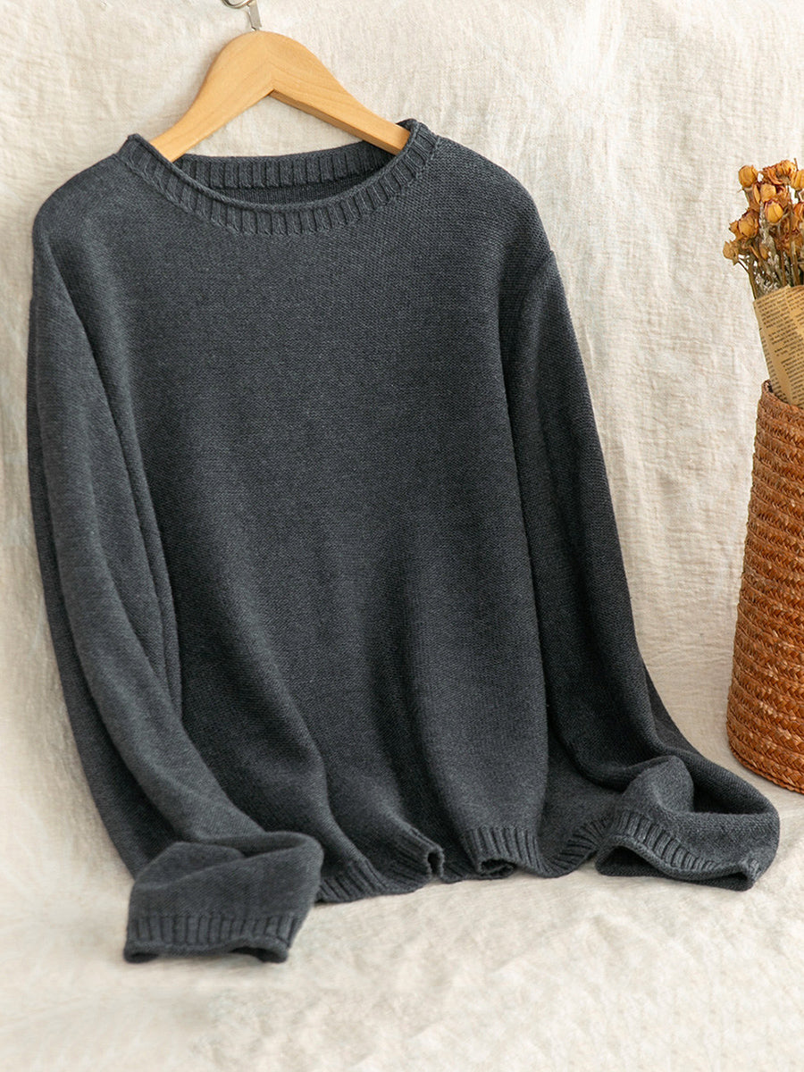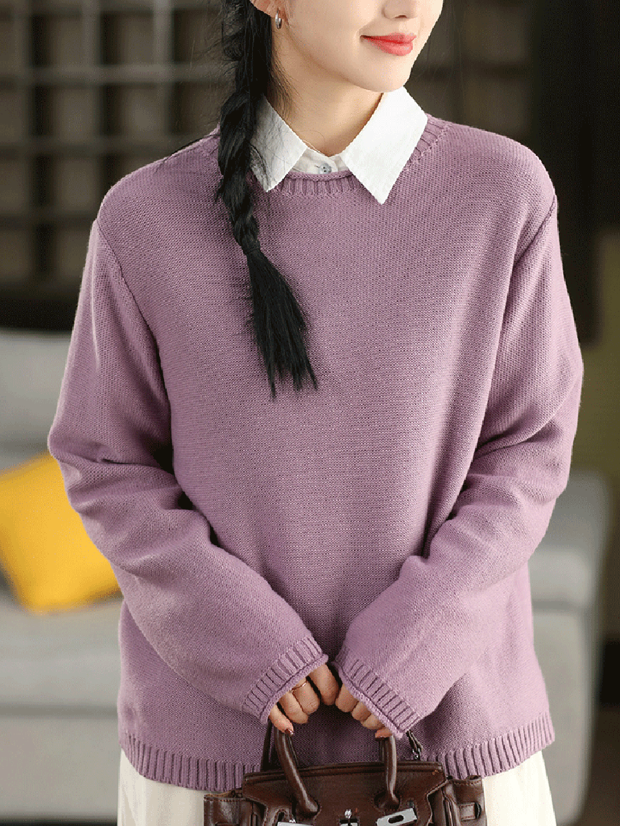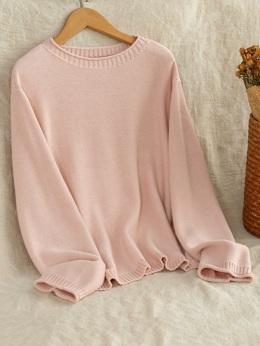 Women Artsy Spring Pure Color O-Neck Sweater