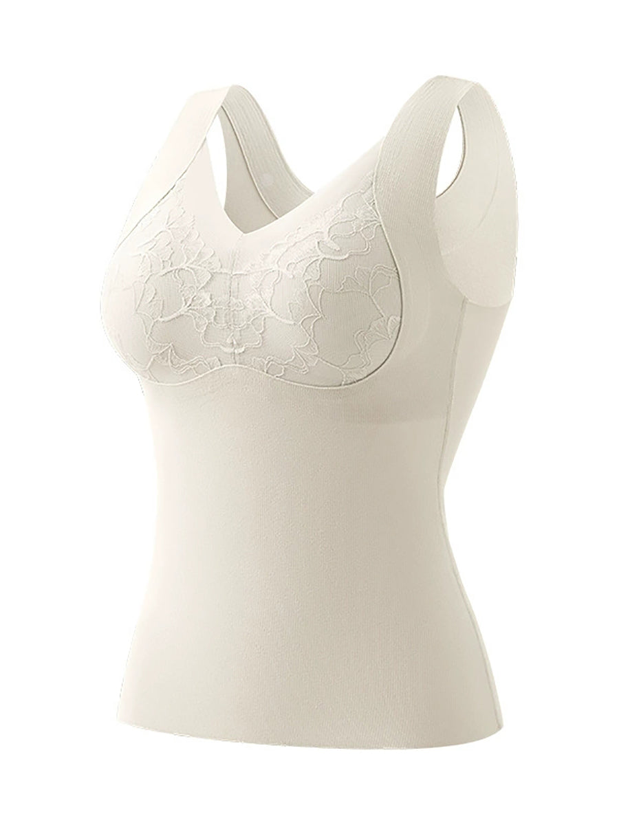 Women Autumn Artsy Lace Spliced V-Neck Bottom Vest