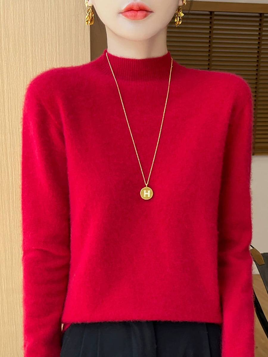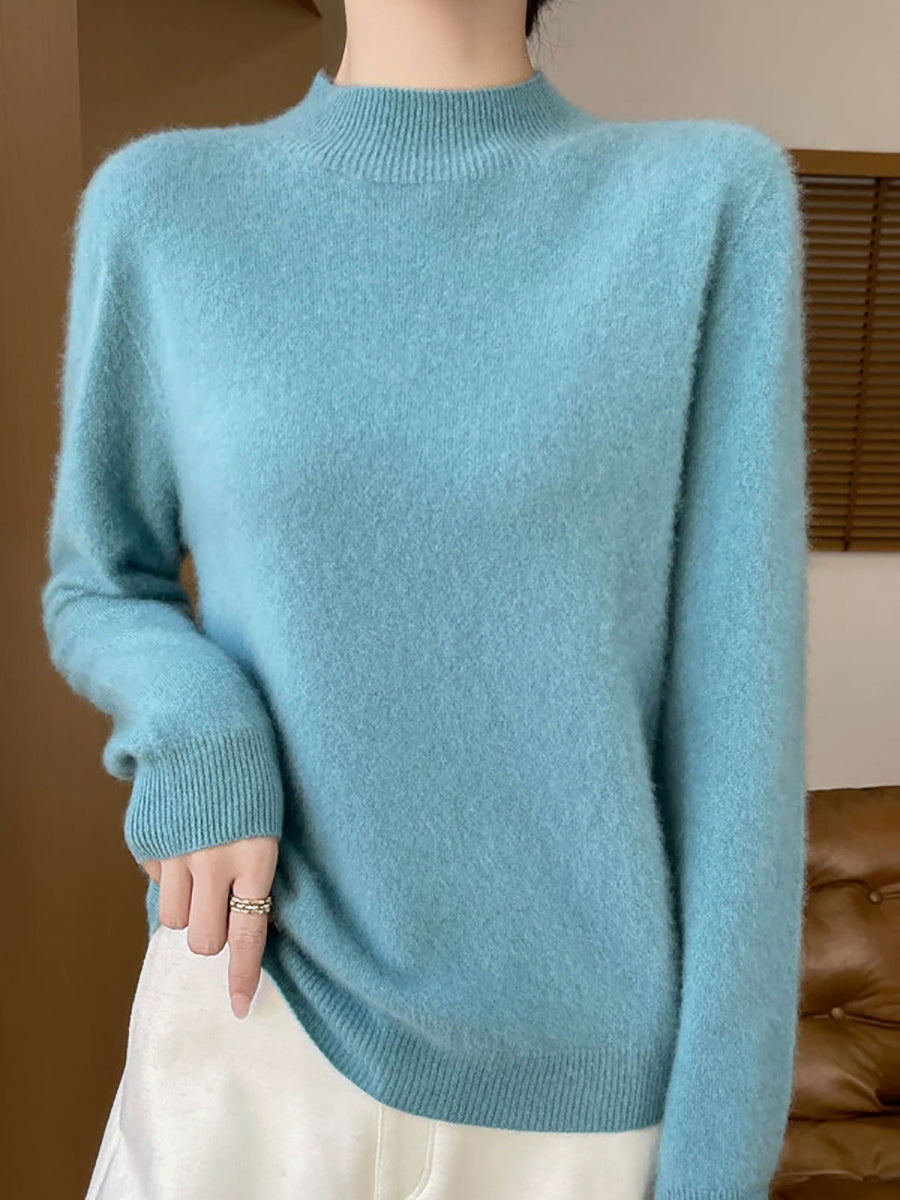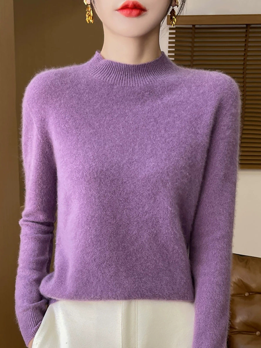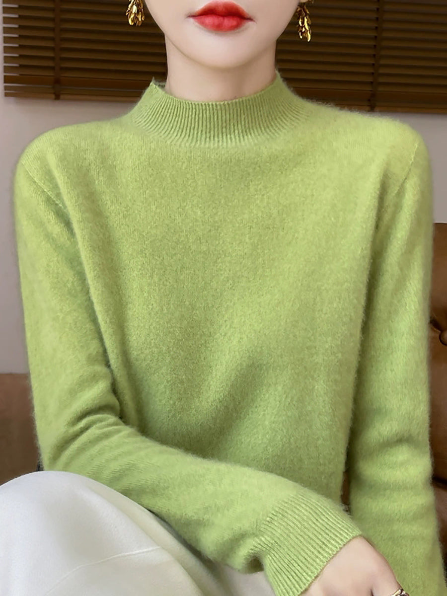Women Autumn Artsy Pure Color Half-Turtleneck Sweater