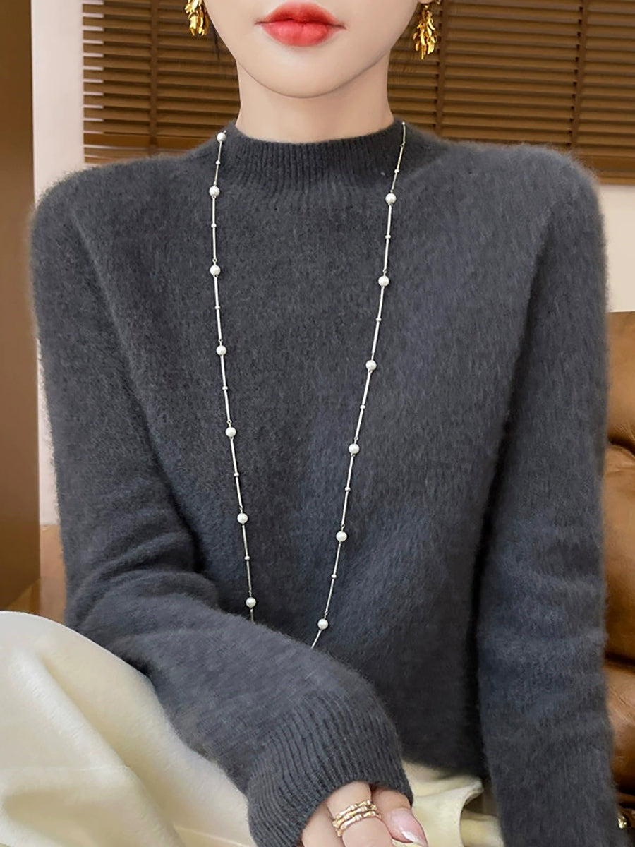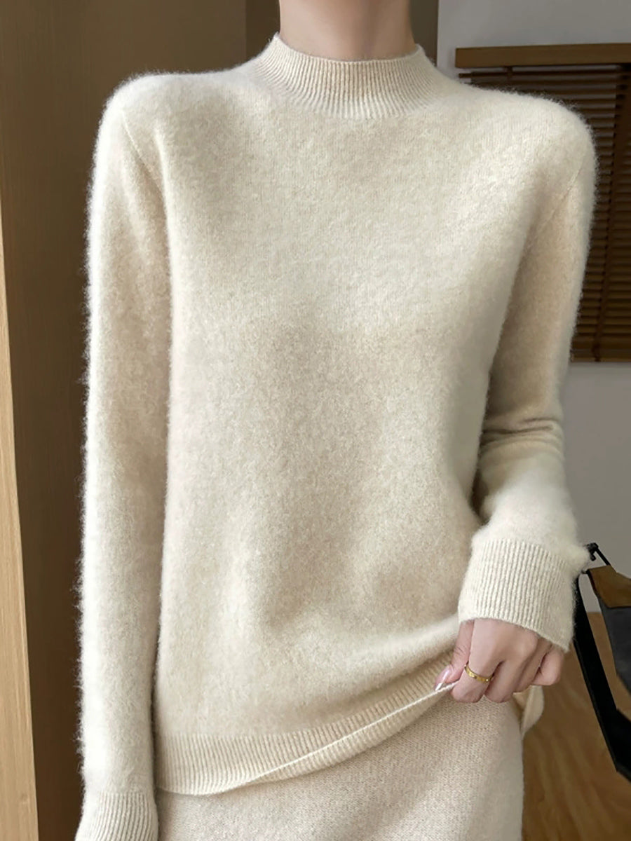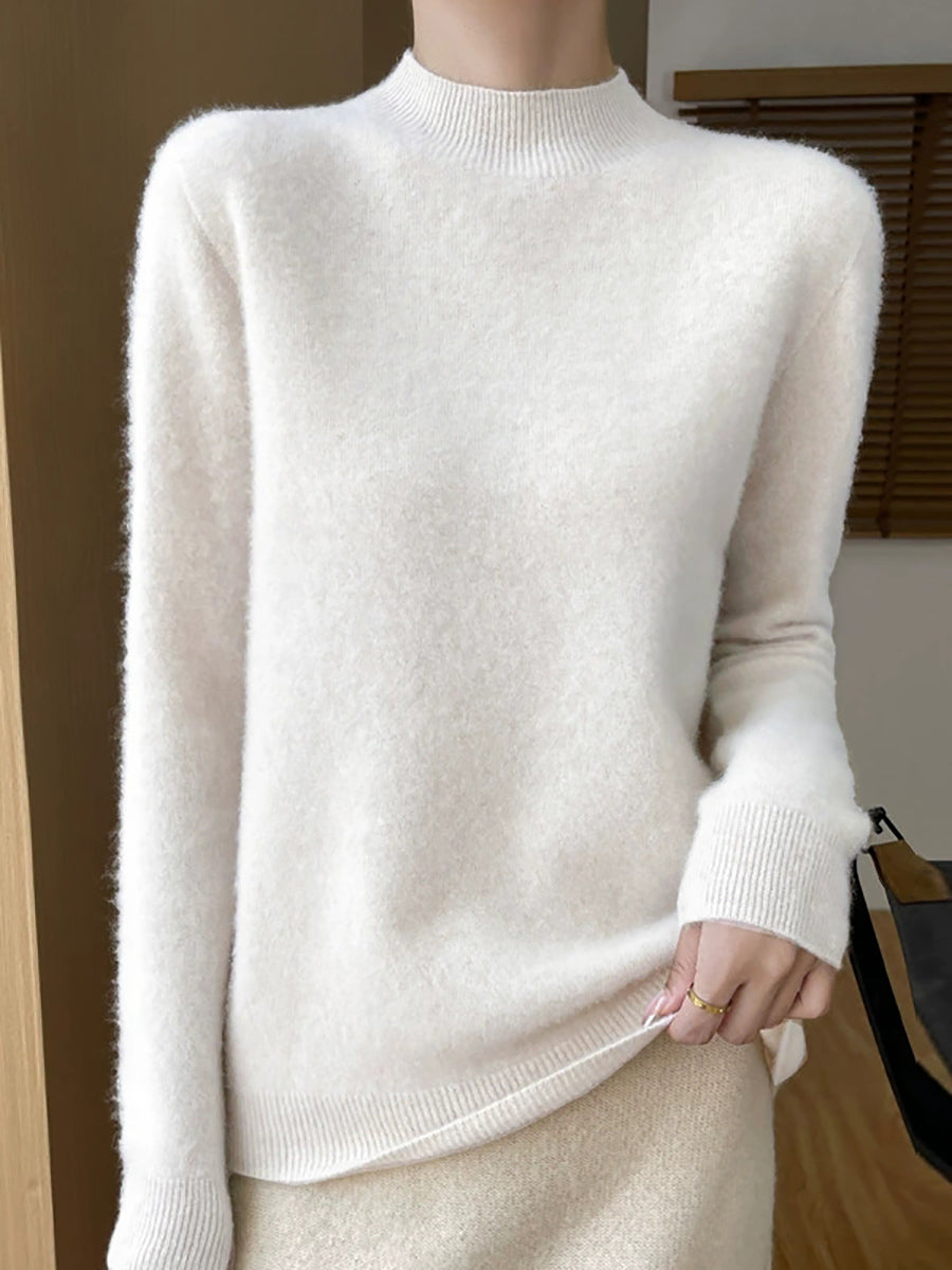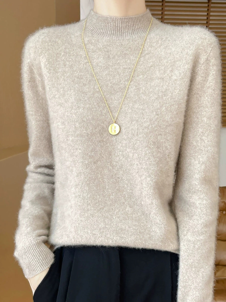 Women Autumn Artsy Pure Color Half-Turtleneck Sweater