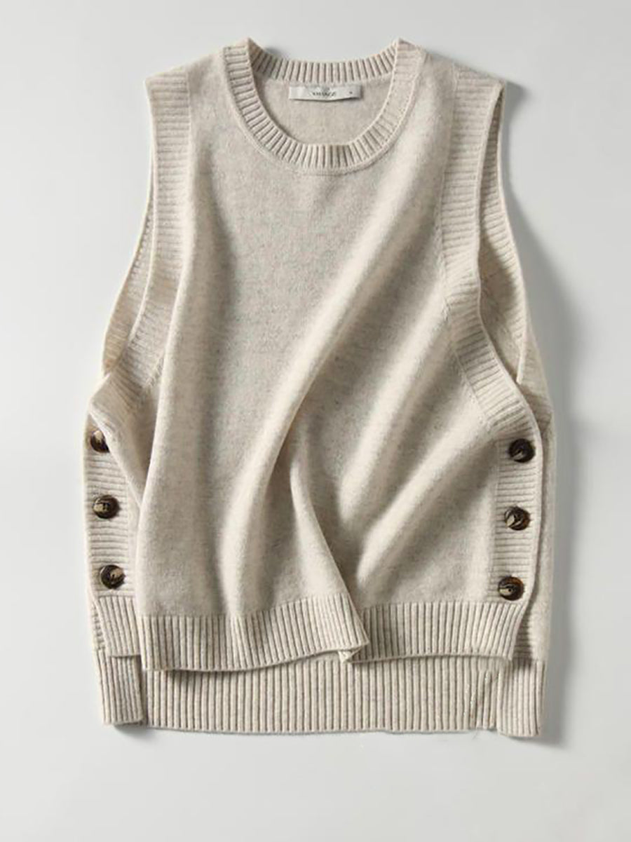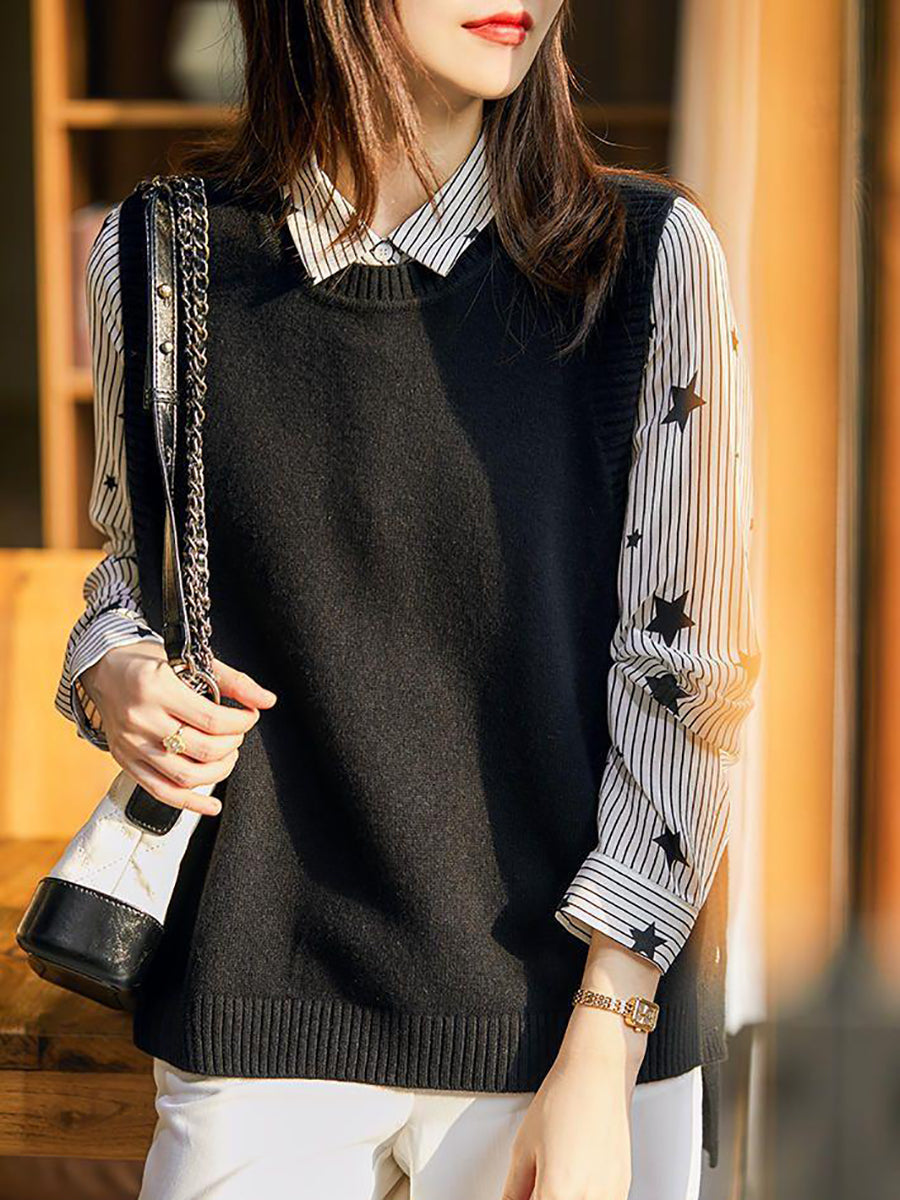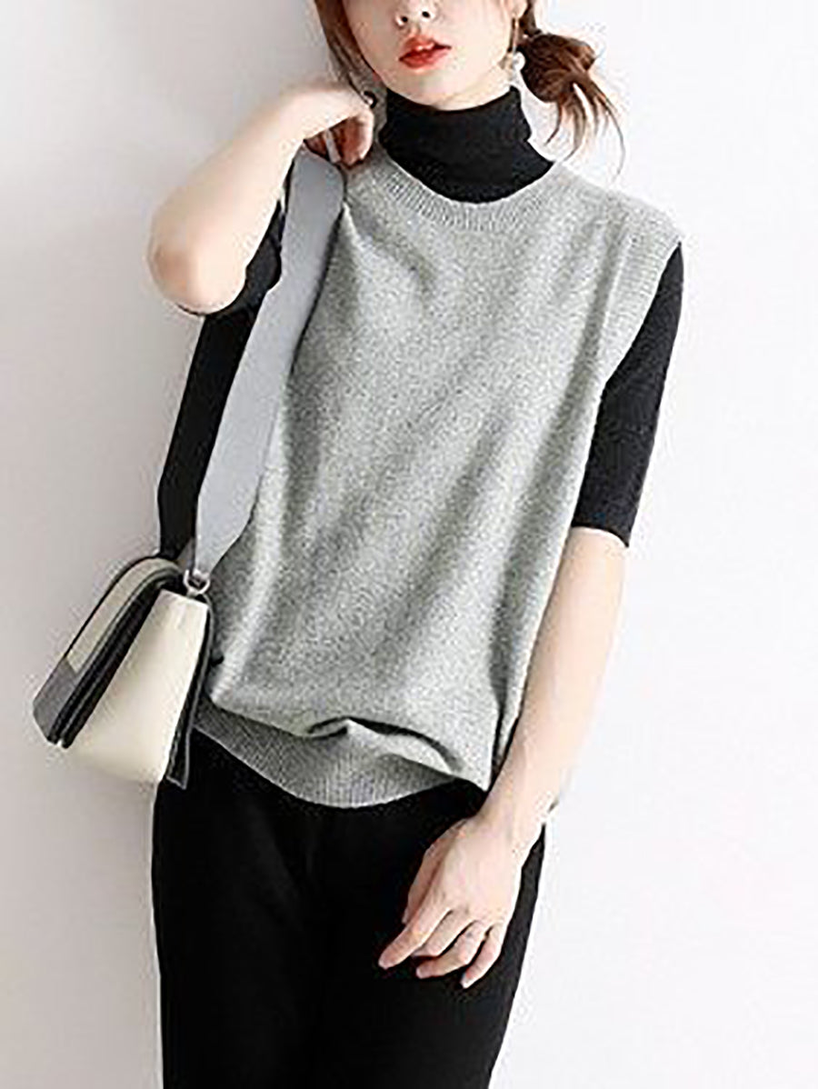 Women Autumn Artsy Pure Color O-Neck Knitted Vest
