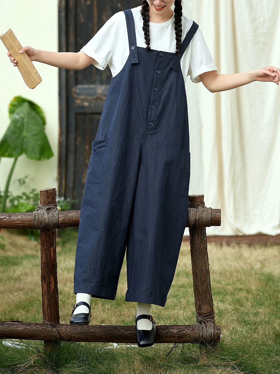 Women Casual Spring Pure Color Cotton Jumpsuits