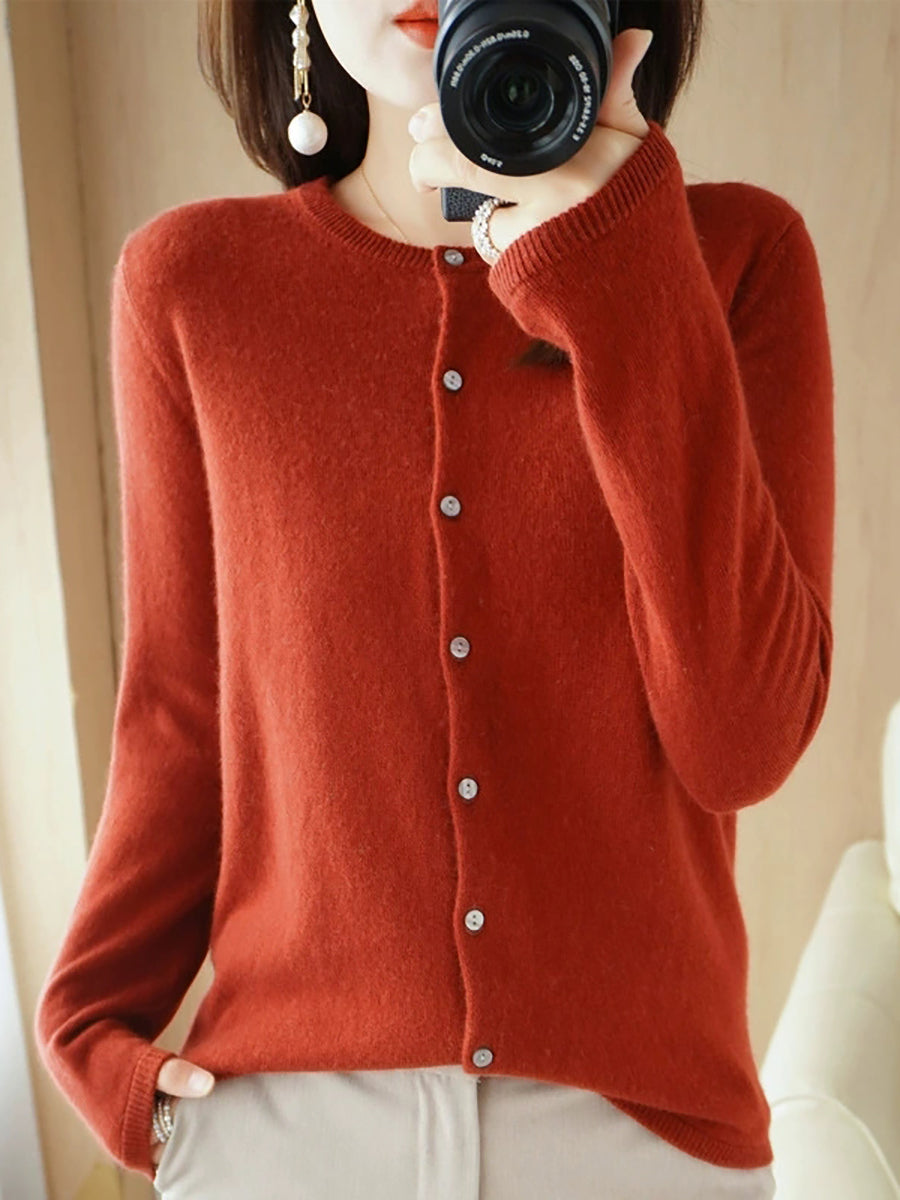 Women Casual Spring Pure Color O-Neck Sweater
