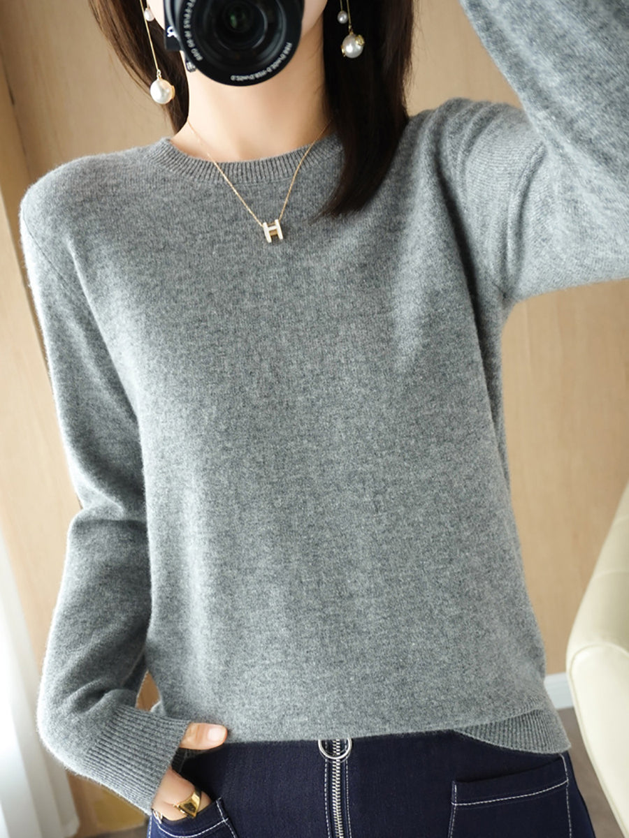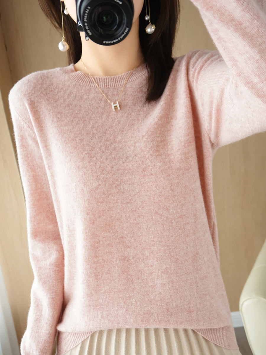 Women Casual Spring Pure Color O-Neck Sweater