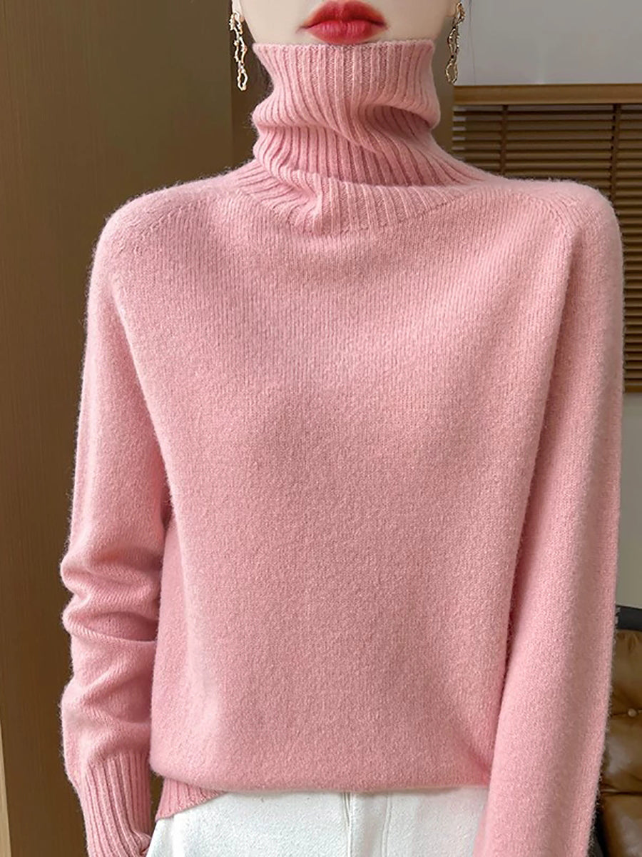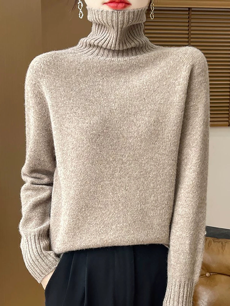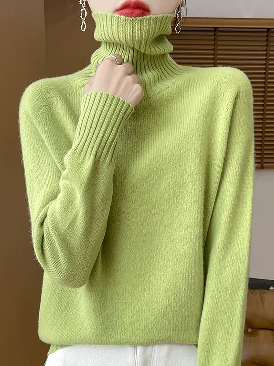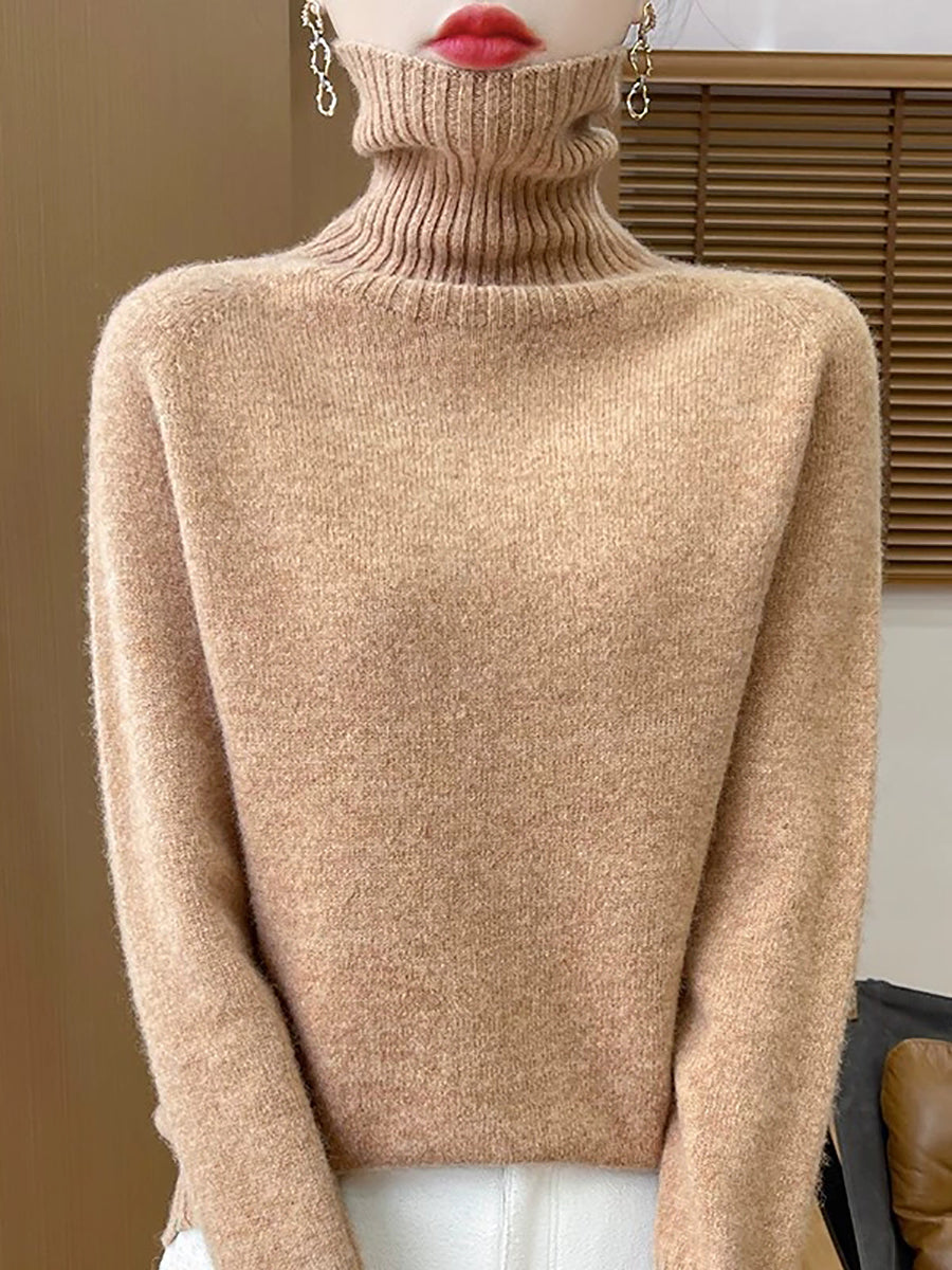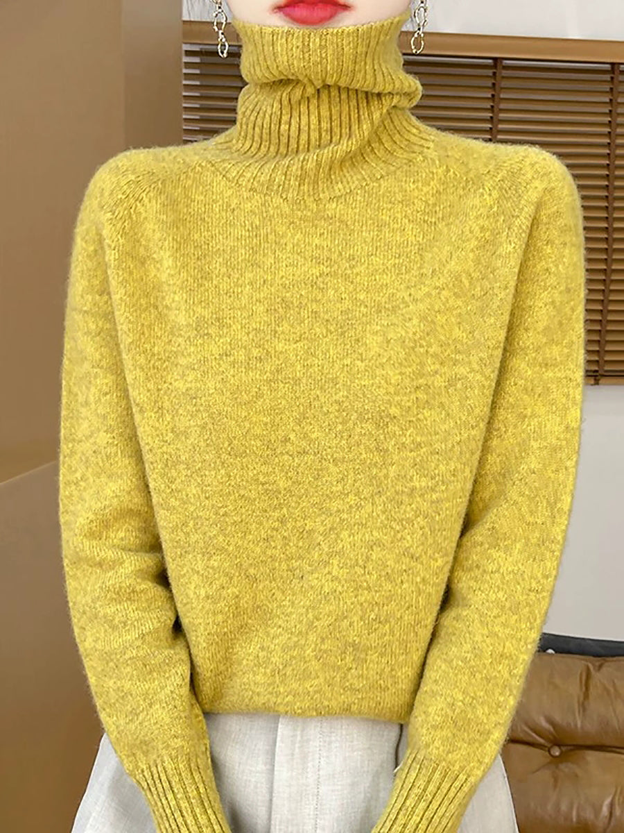 Women Casual Spring Pure Color Turtleneck Sweater