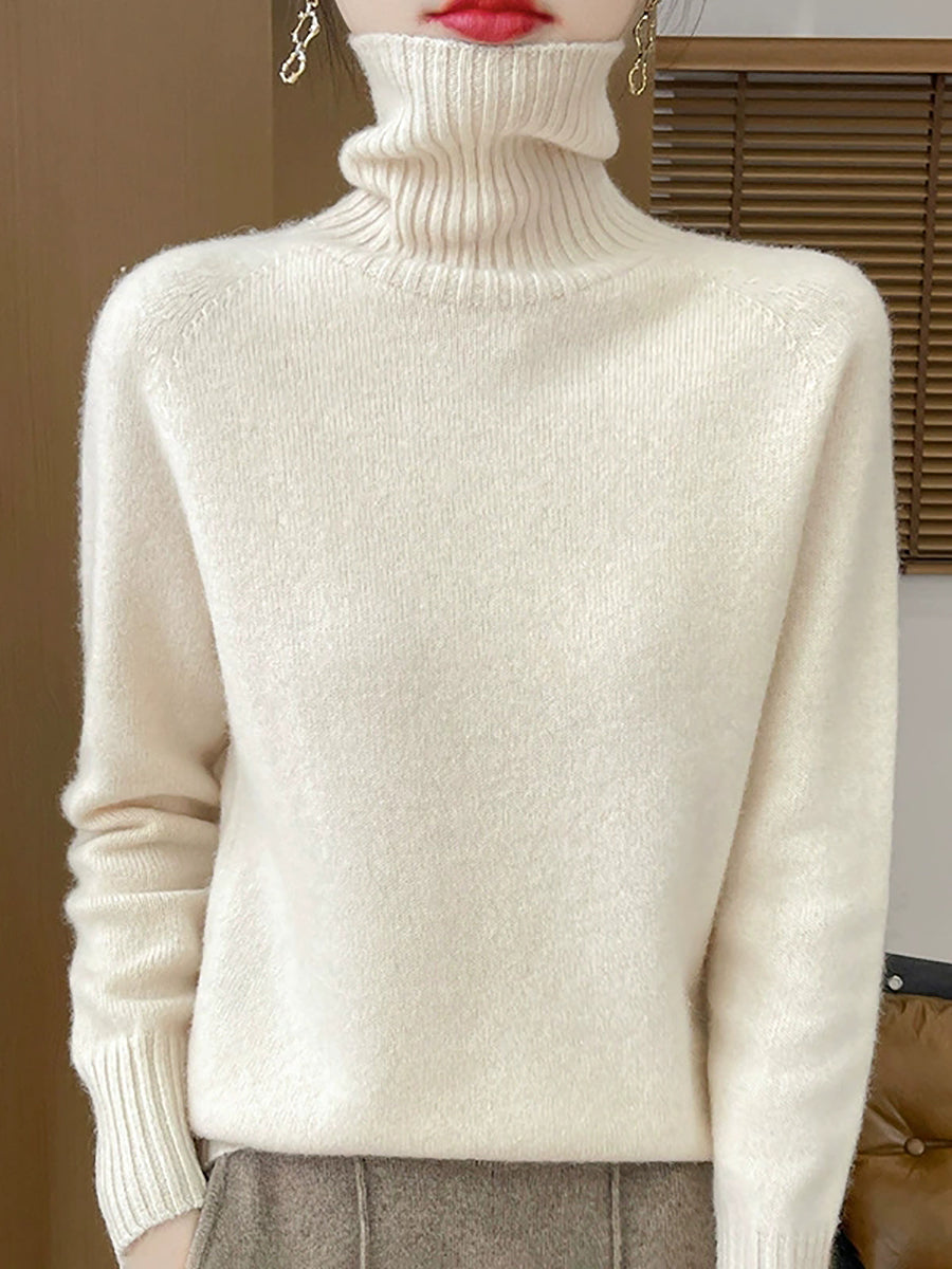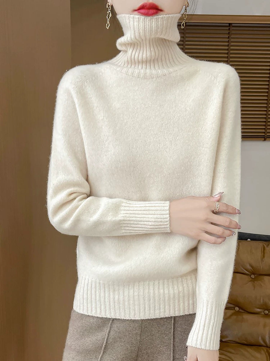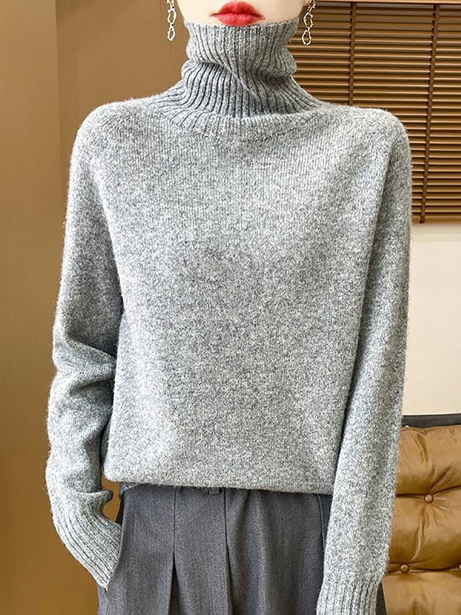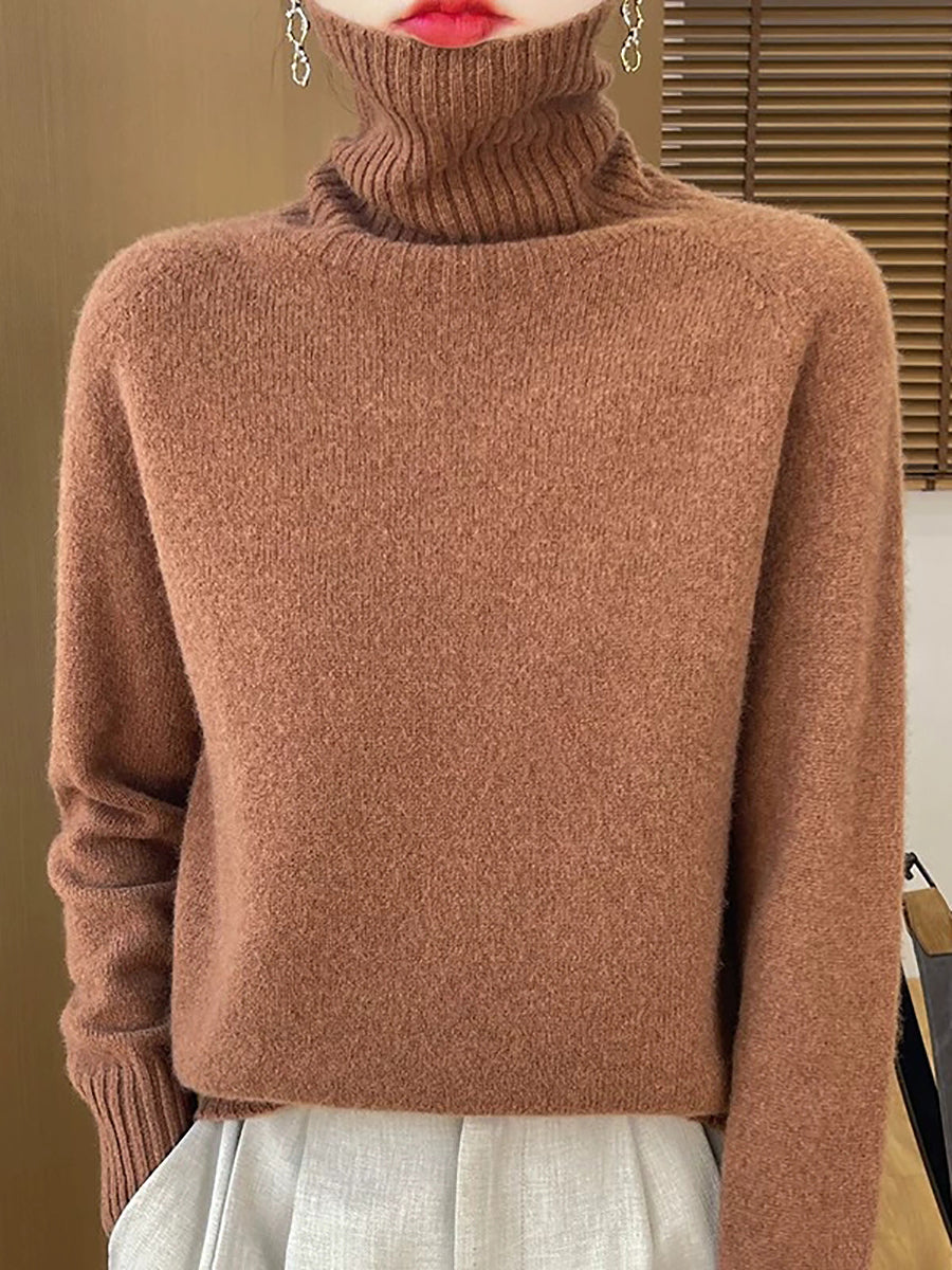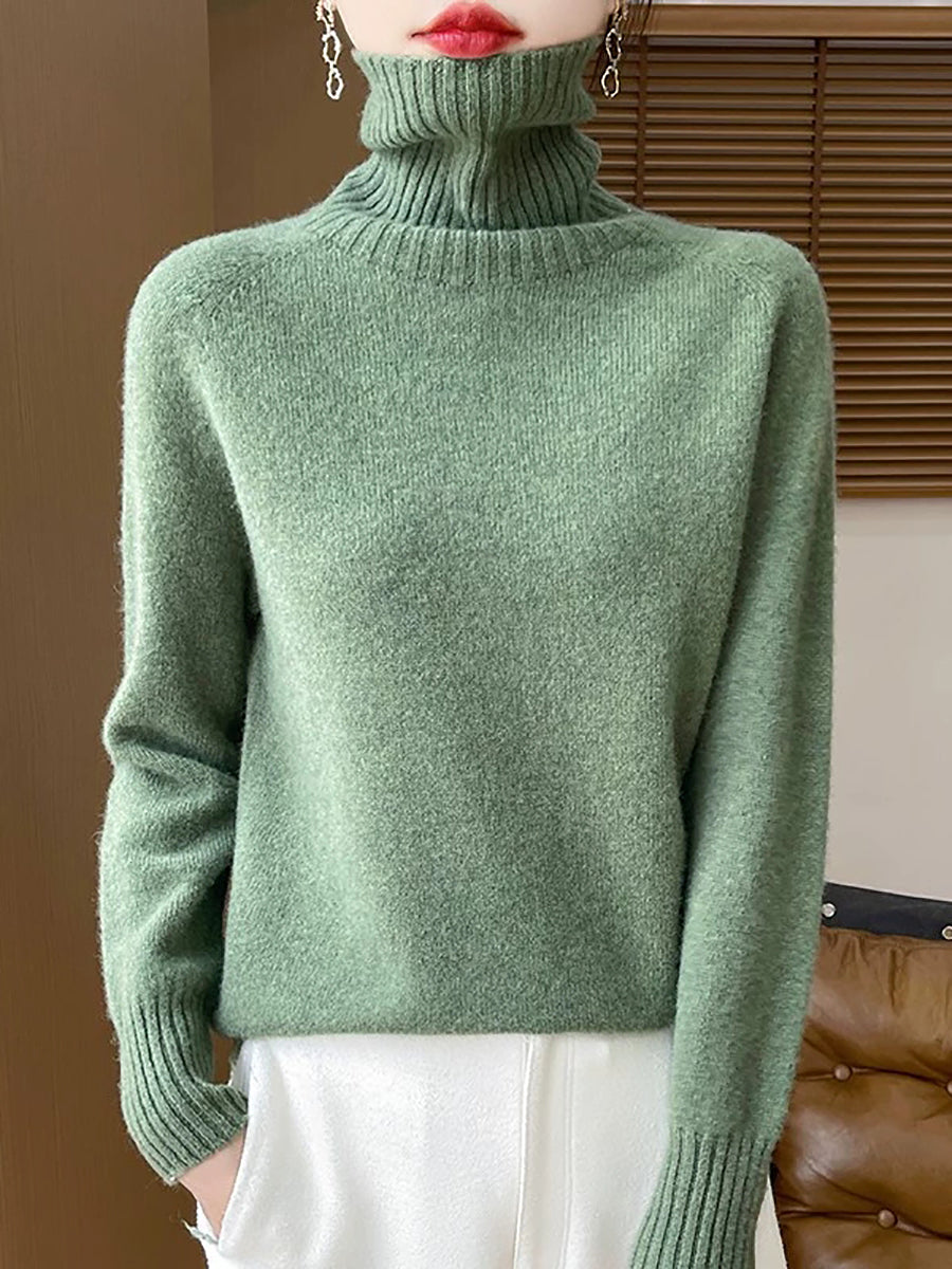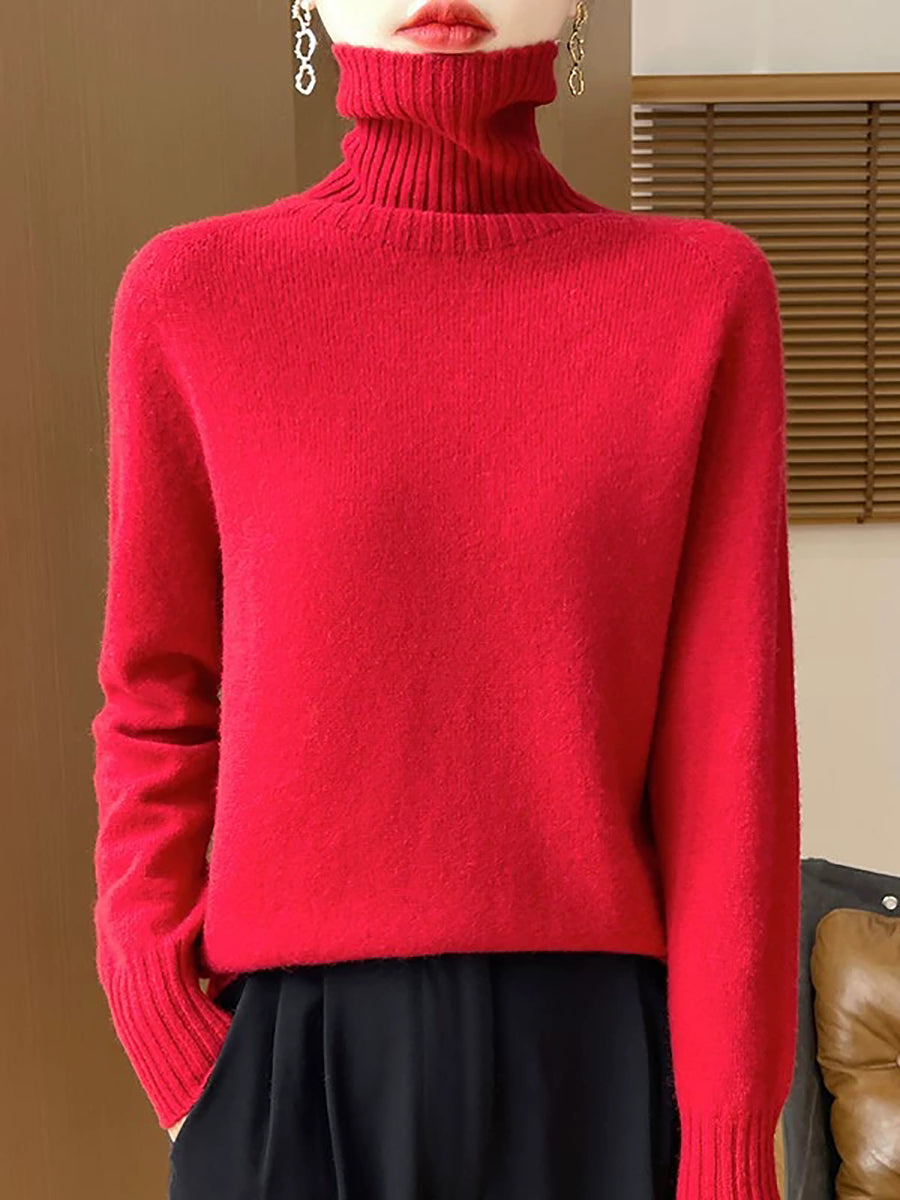Women Casual Spring Pure Color Turtleneck Sweater