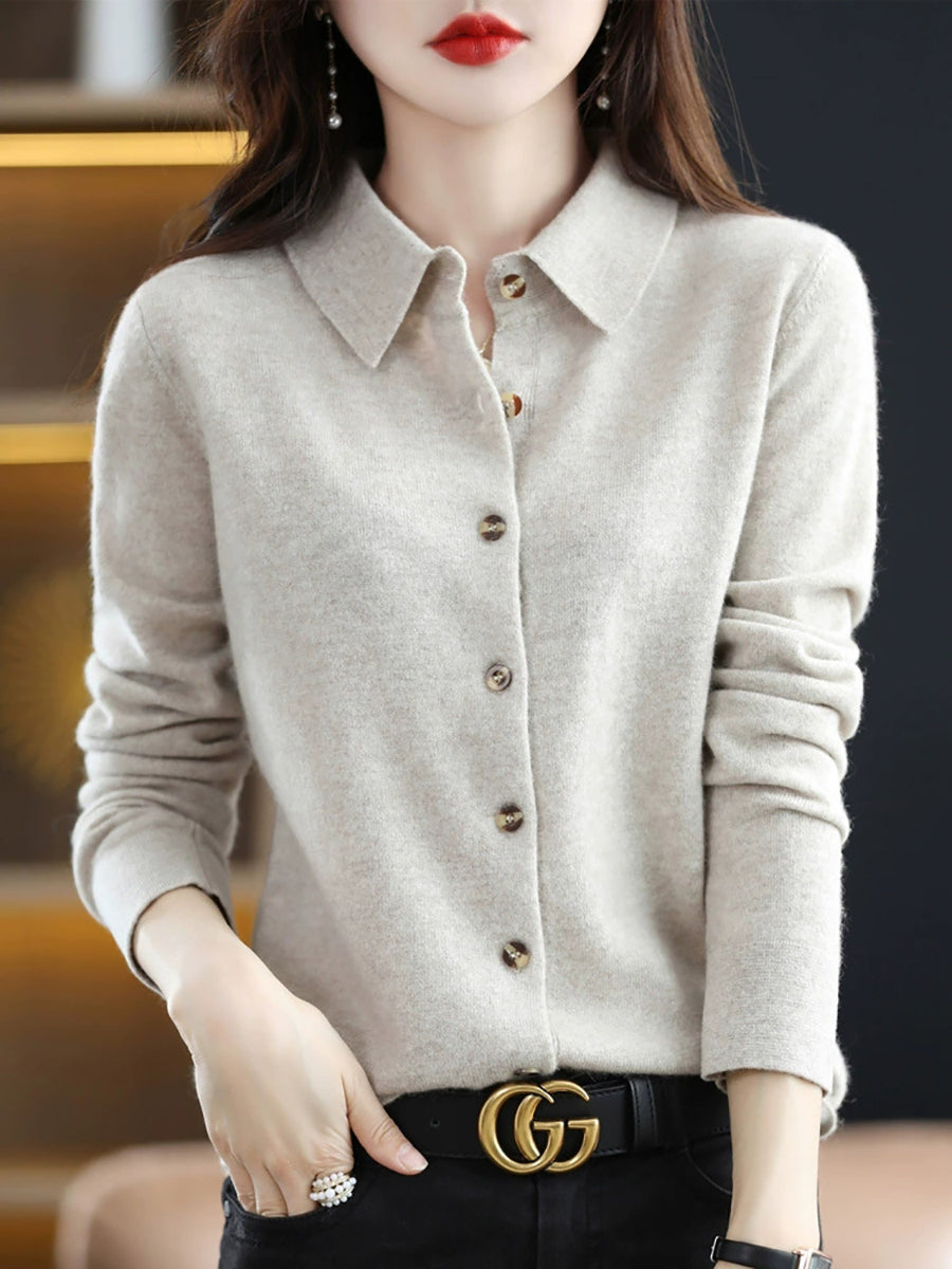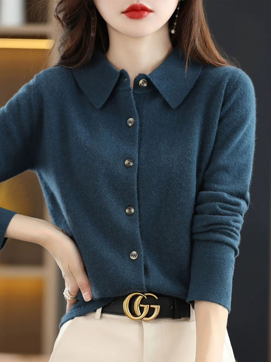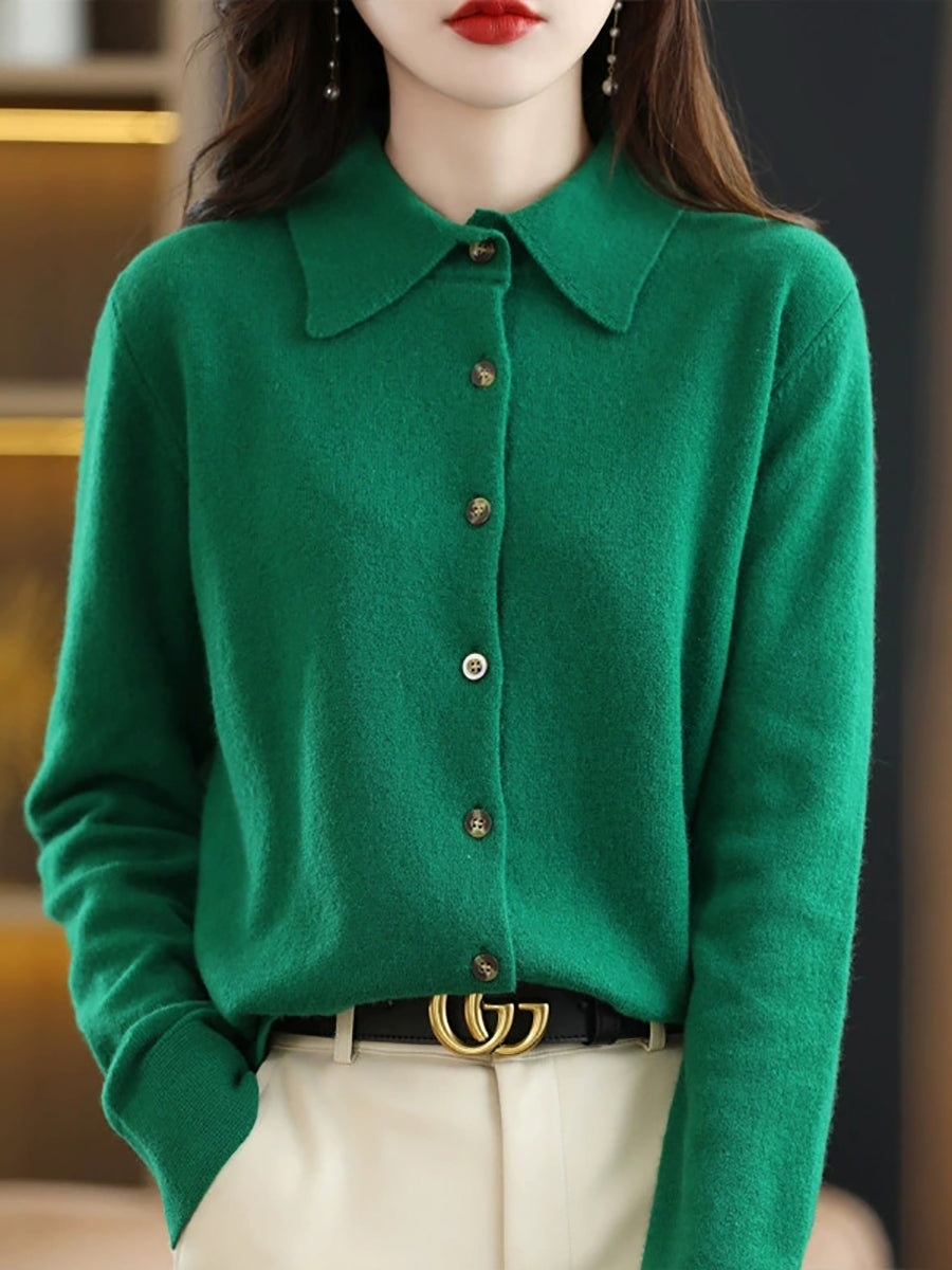 Women Casual Spring Turn-down Collar Cardigan Sweater