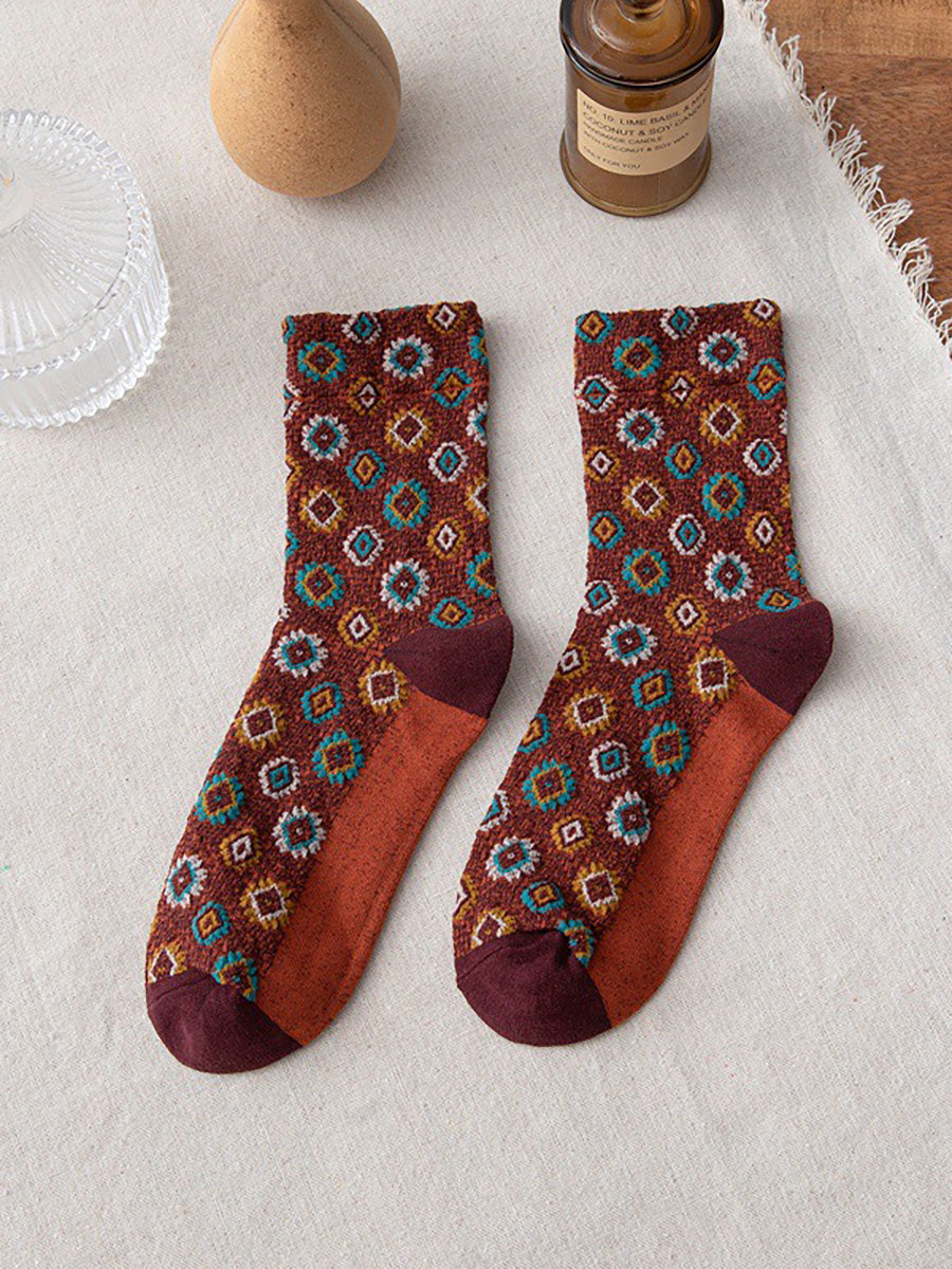 Women Floral Vintage Casual Autumn Winter Socks 5 Pairs