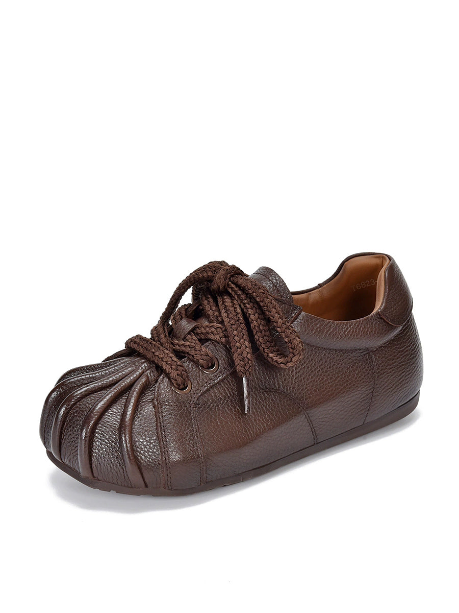 Women Retro Genuine Leather Spliced Flat Shoes