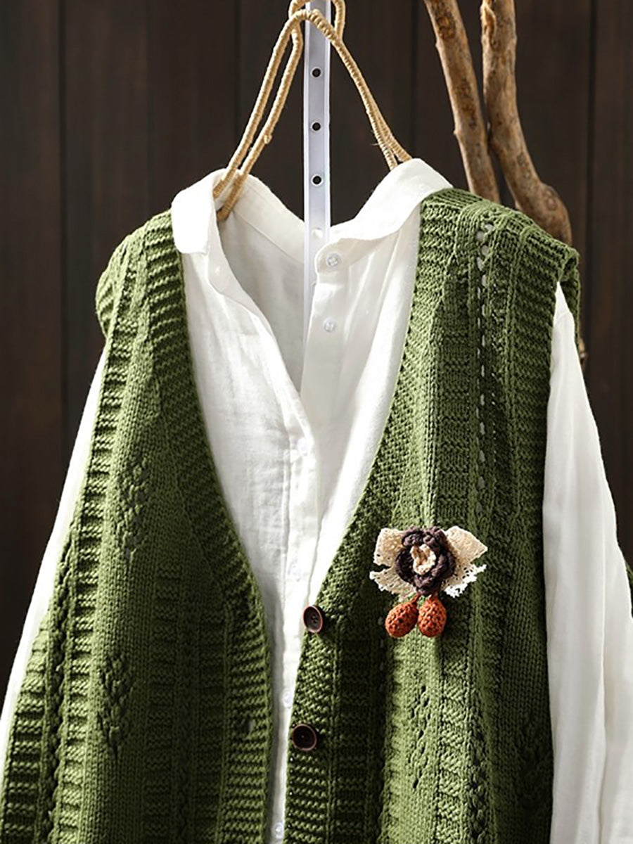 Crafted from a thoughtfully balanced blend of 45% cotton and 55% acrylic, this knitted vest delivers both comfort and durability. The distinctive V-neck silhouette pairs with an artsy aesthetic, making it an ideal layering piece for transitional seasons. Perfect for spring and autumn wear, this versatile garment bridges casual and refined styling with understated sophistication.