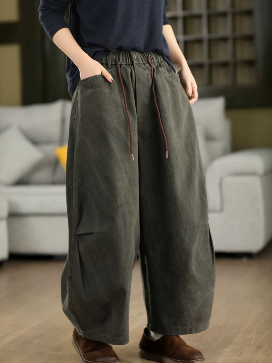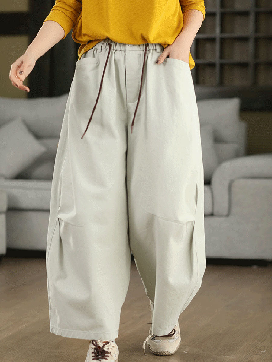 Women Spring Casual Pure Color 100%Cotton Straight Pants