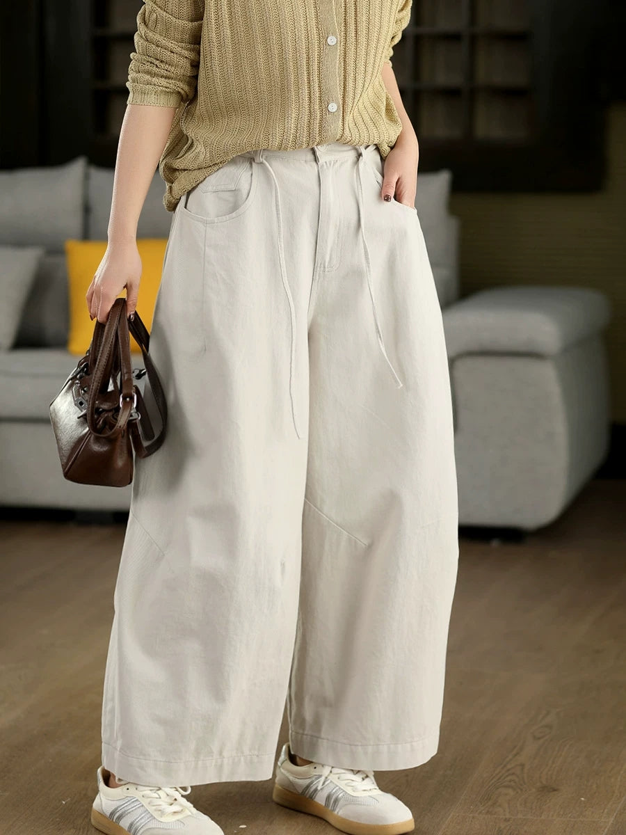 Women Spring Casual Pure Color 100%Cotton Wide-leg Pants
