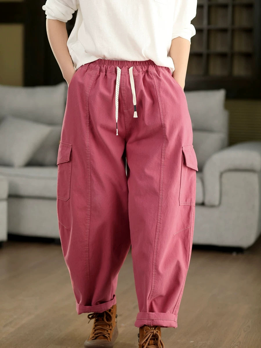 Women Spring Casual Pure Color Cotton Harem Pants