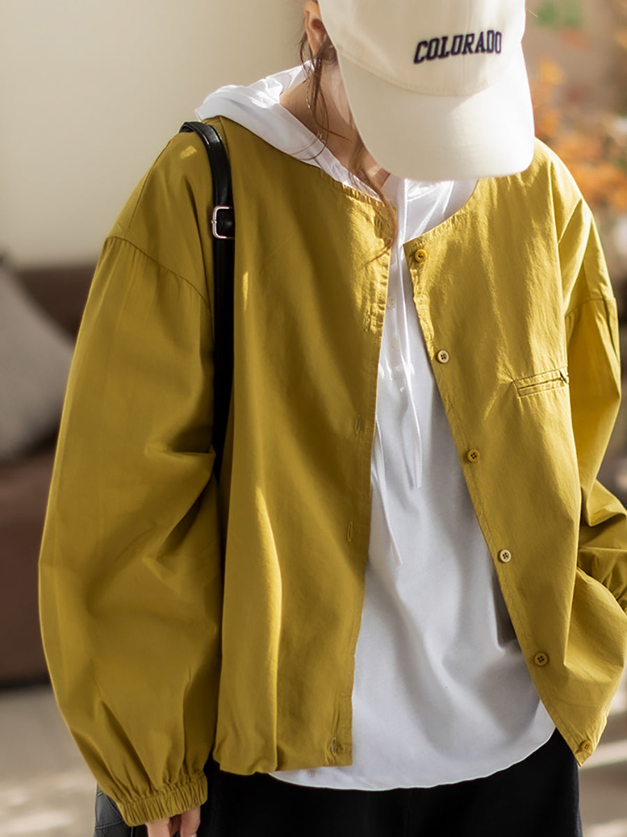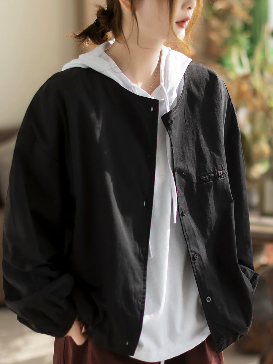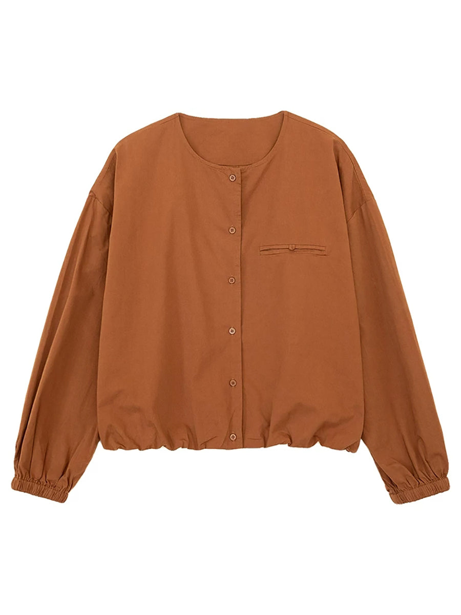 Women Spring Pure Color Cotton O-Neck Shirt Coat