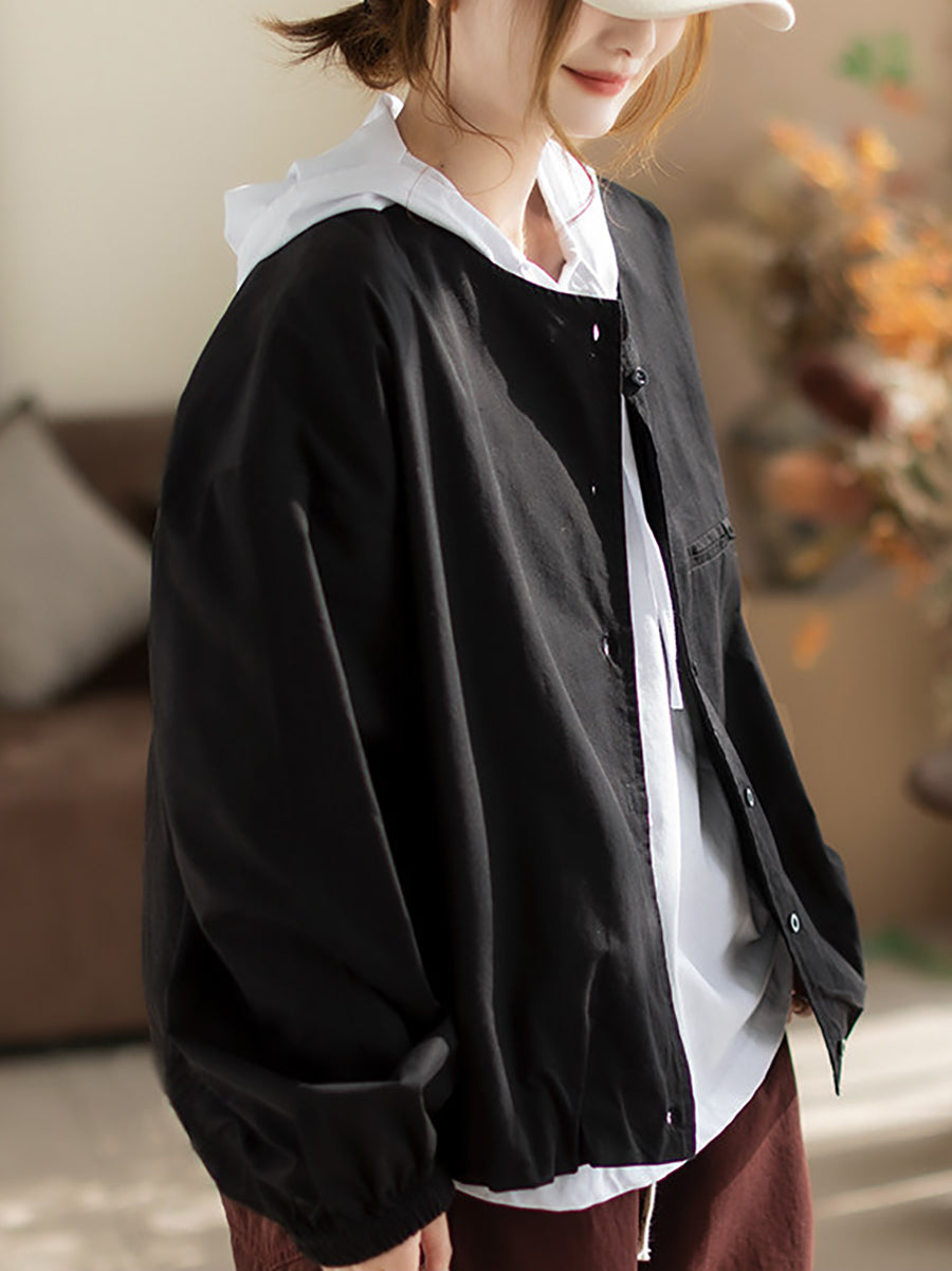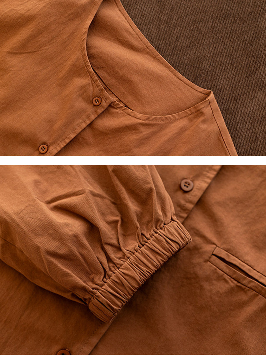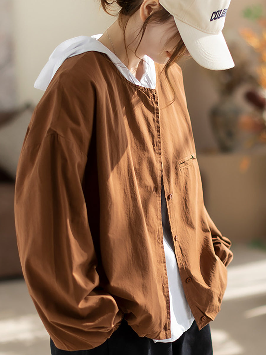 Women Spring Pure Color Cotton O-Neck Shirt Coat