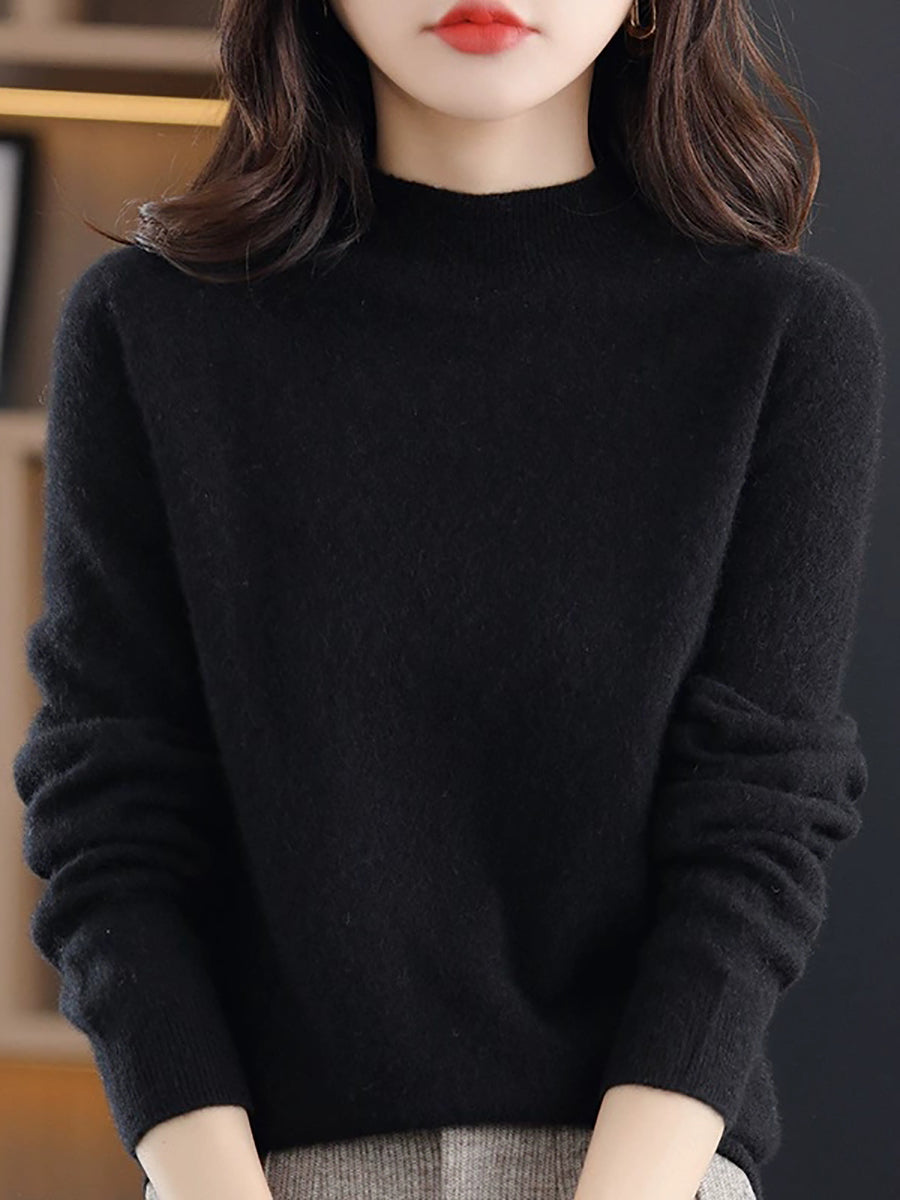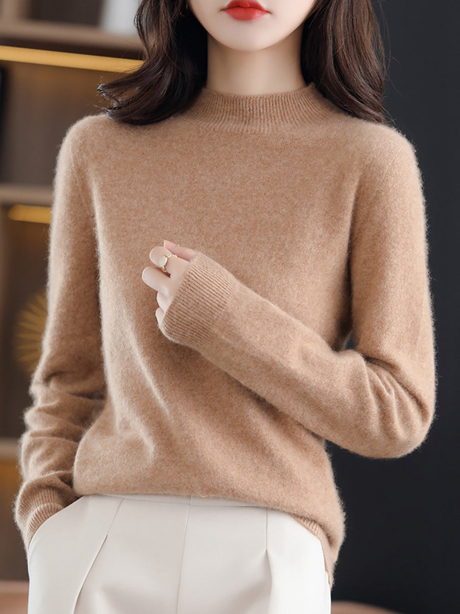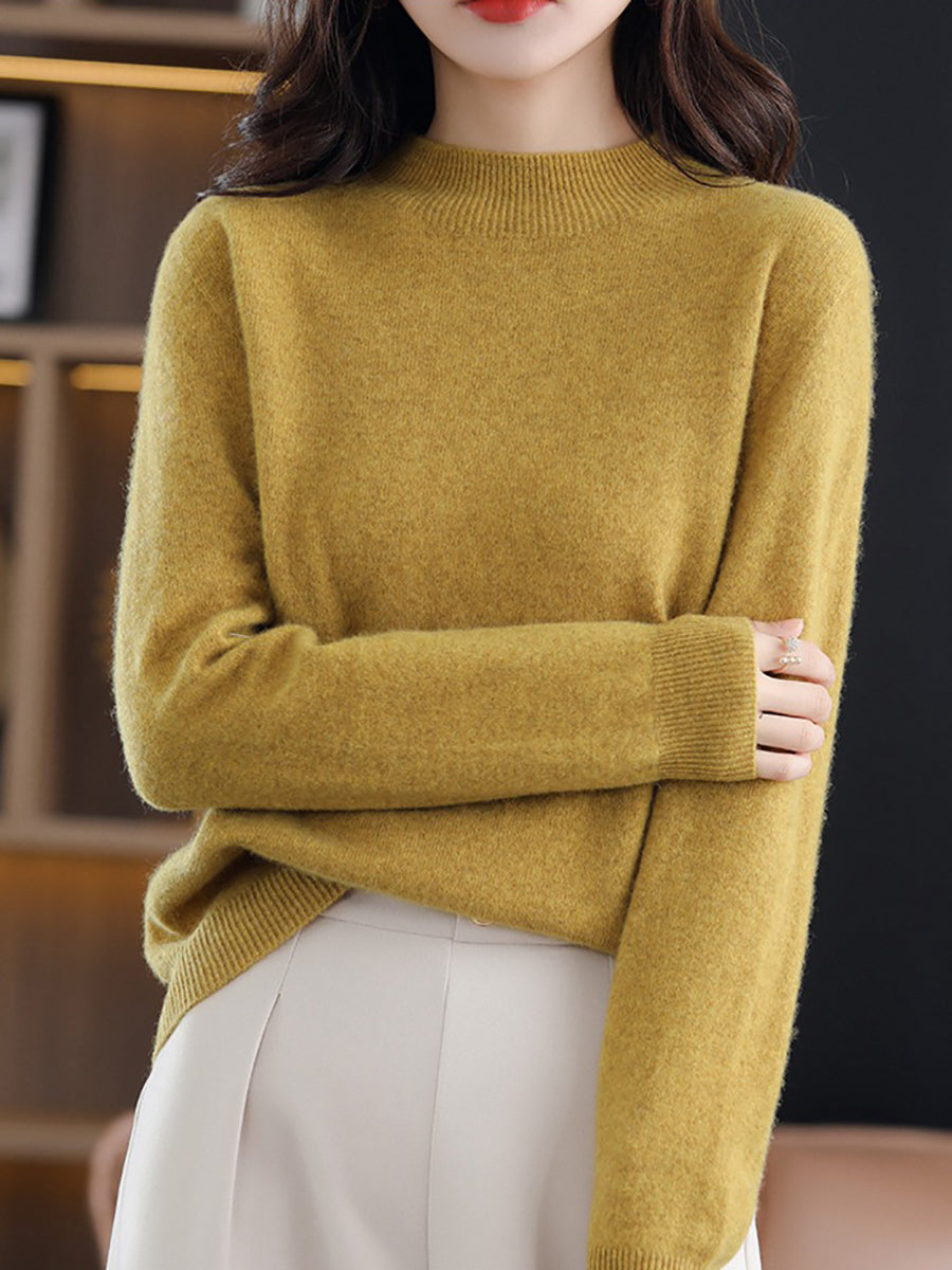 Women Spring Pure Color Half-turtleneck Wool Sweater